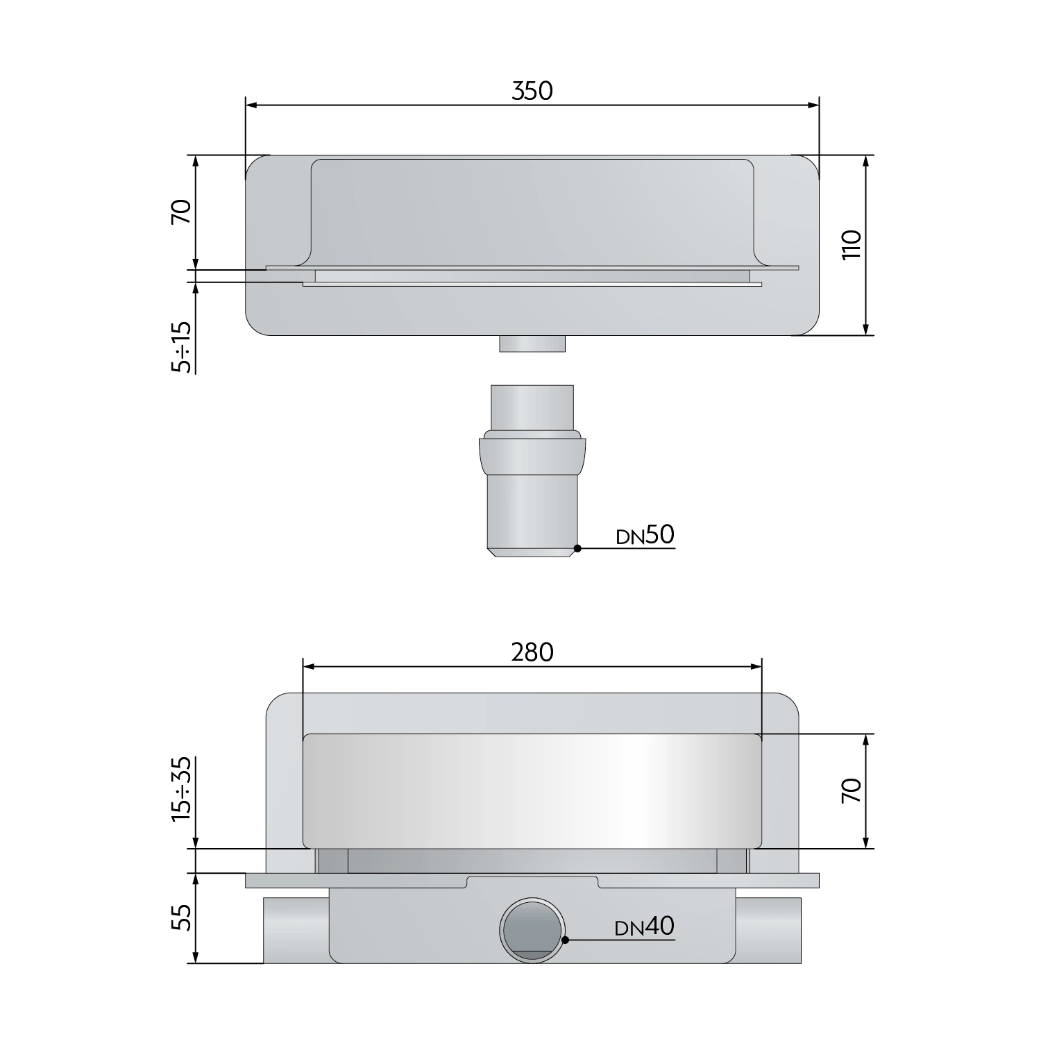 INTRAMURA odpływ ścienny, pokrywa ze stali nierdzewnej, L-350, DN40