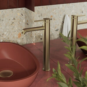 Szczotkowany brąz PVD w miękkim, ugruntowanym tonie. Ta wysoka bateria Iris obejmuje inteligentne funkcje, takie jak Cold Start i perlator z rowkiem na monetę – zaprojektowana dla spokojnych łazienek z głębią i kontrastem.