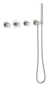 Stal PVD z chłodnym, szczotkowanym wykończeniem i wysoką trwałością. Zaprojektowany do nowoczesnych łazienek z naciskiem na funkcję i finezję, ta konfiguracja zapewnia mocną równowagę wizualną i długotrwałą wydajność.