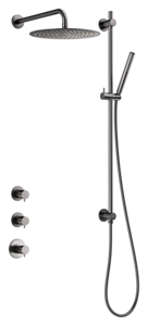 Szary grafit PVD dla dopracowanej, niskopołyskowej powierzchni o projektowym charakterze. Zintegrowany drążek i dopasowane elementy bez wysiłku wtapiają się w nowoczesne wnętrza. Wyjątkowy wybór do ciemnych, teksturowanych łazienek.