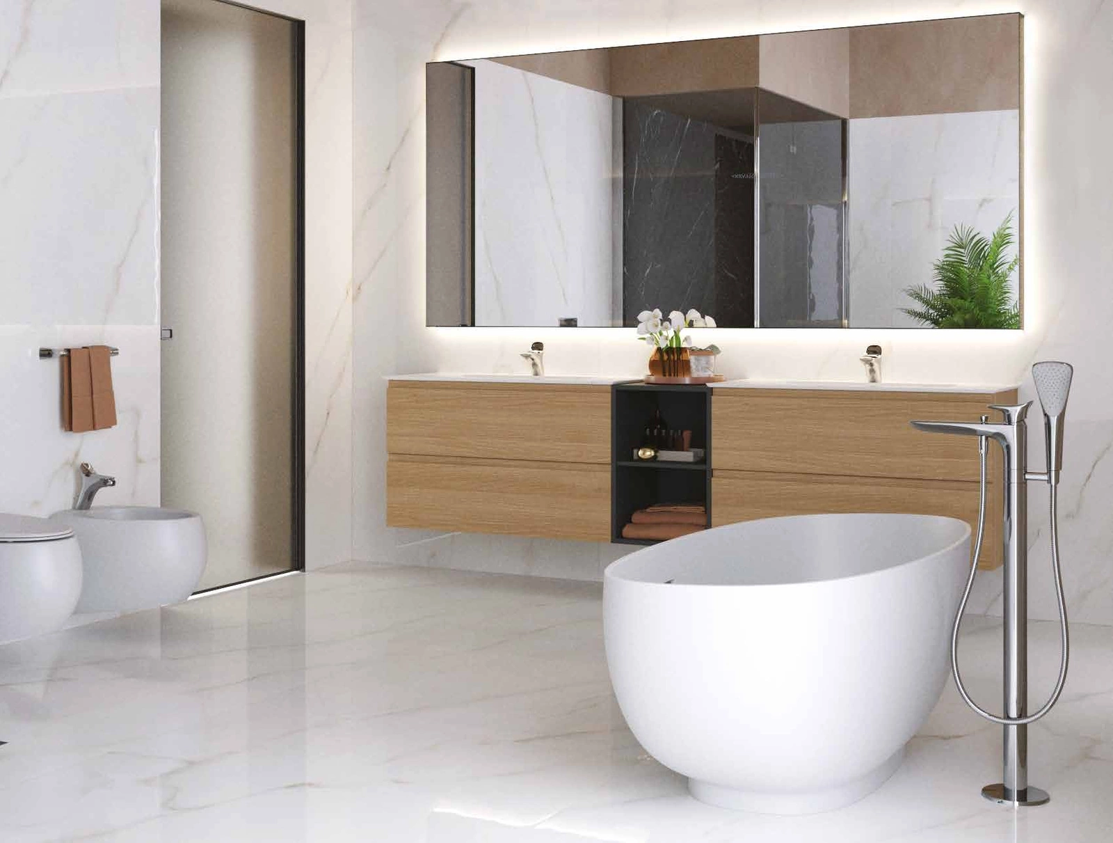 Drzwi i szuflady są wyposażone, w gwarantowane przez cały okres eksploatacji, Blum prowadnice szufladowe. Istnieje również możliwość modernizacji RAK-JOY z oświetleniem wielokrotnego ładowania USB i lusterkami z matą grzewczą. Wewnętrzne akcesoria szufladowe dopełniają wyglądu.