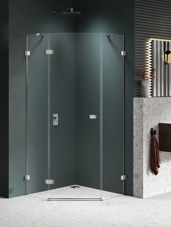 Kabina prysznicowa AVEXA NICKEL BRUSHED 1D pięciokątna L 90x90x200 szkło czyste 6mm Active Shield 2.0