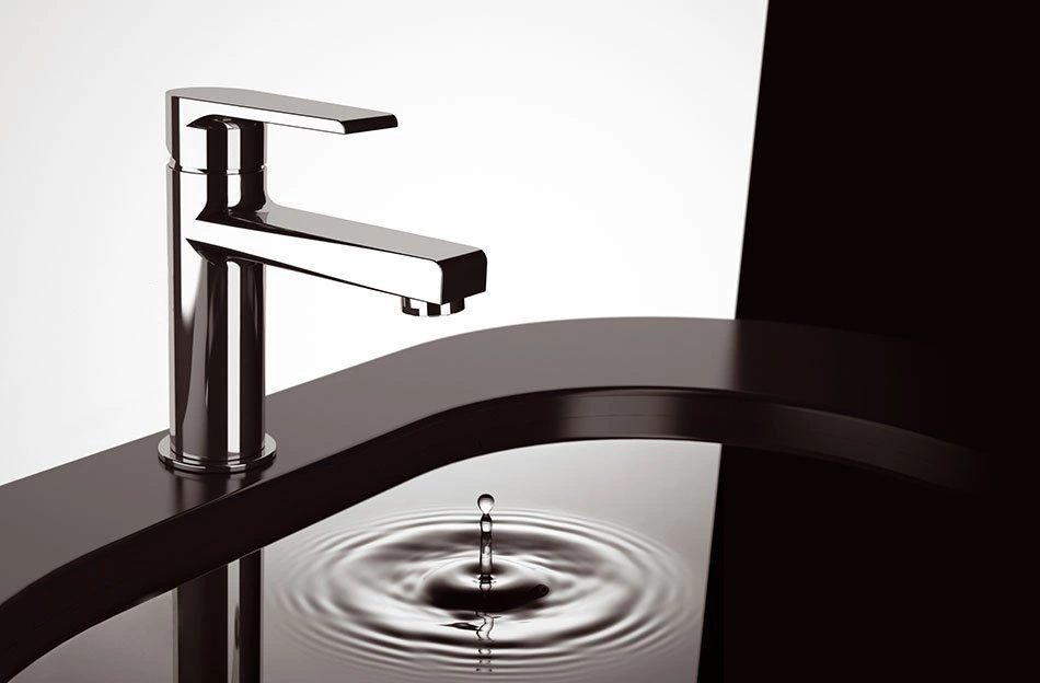 Korpus w postaci walca i kanciasta wylewka, oto ponadczasowy design, który jest dostępny w ofercie serii KAI. Jednolity wygląd podkreśla masywna dźwignia, która kopiuje kształt wylewki. Baterie z serii oferowane są w kolorze chrom i czarny mat.