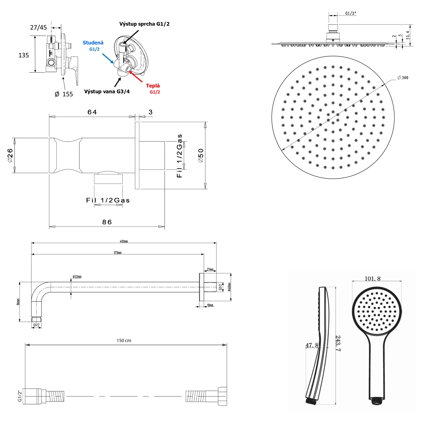 Ramię prysznicowe okrągły 400mm, czarny mat (1 szt.)