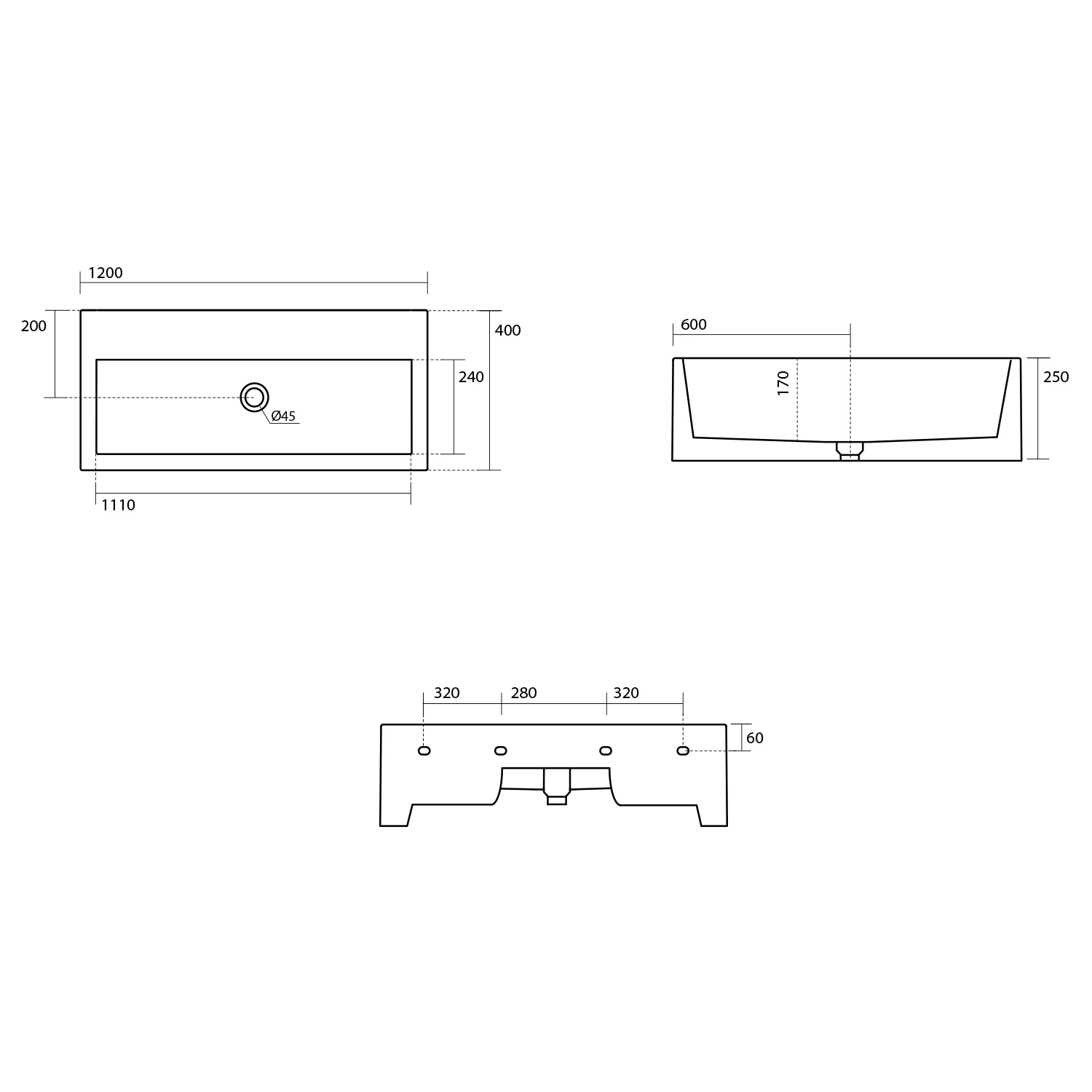 KANAAL umywalka ceramiczna 120x40cm, czarny mat