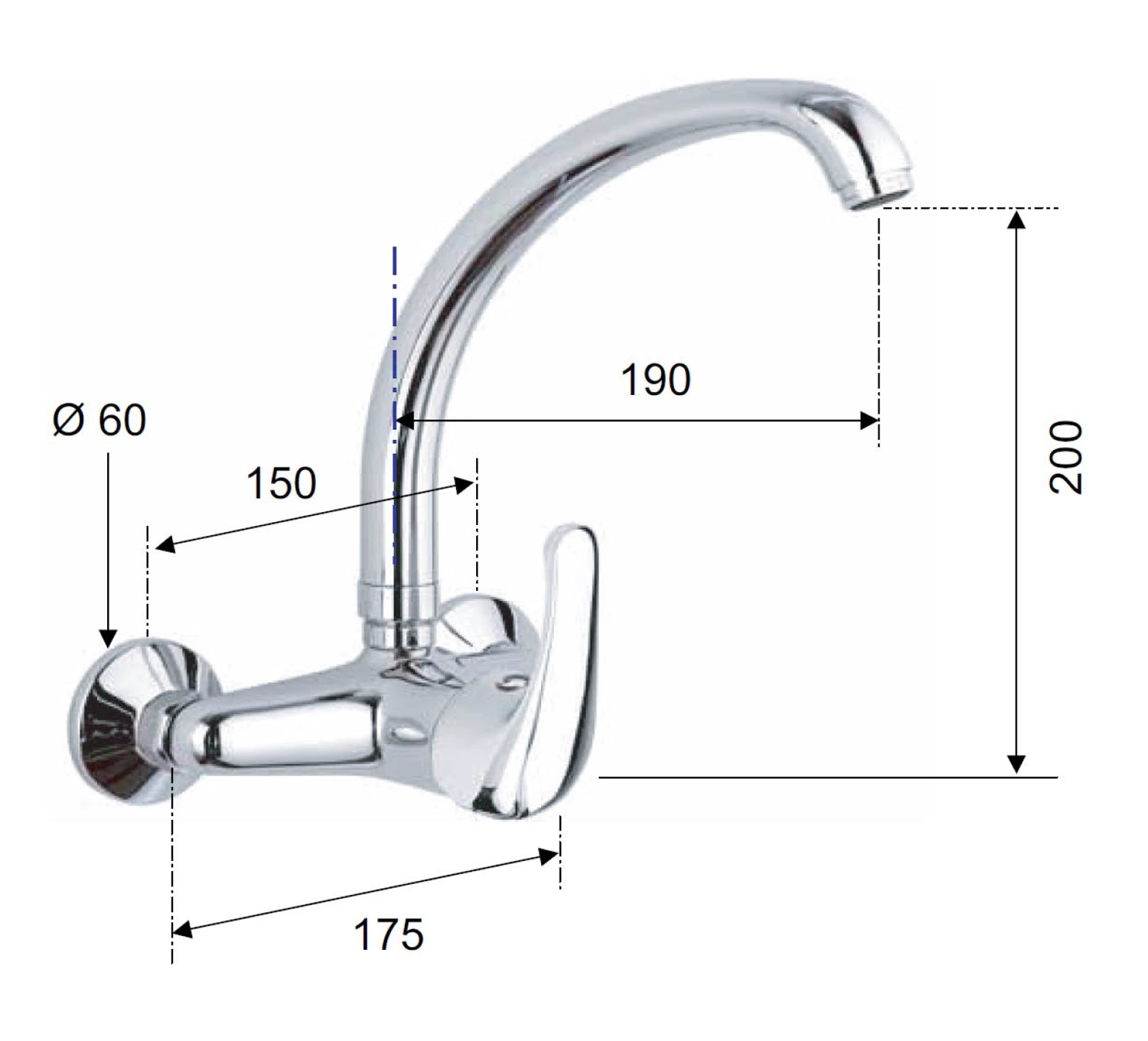 KASIOPEA bateria ścienna z wysoką wylewką, chrom