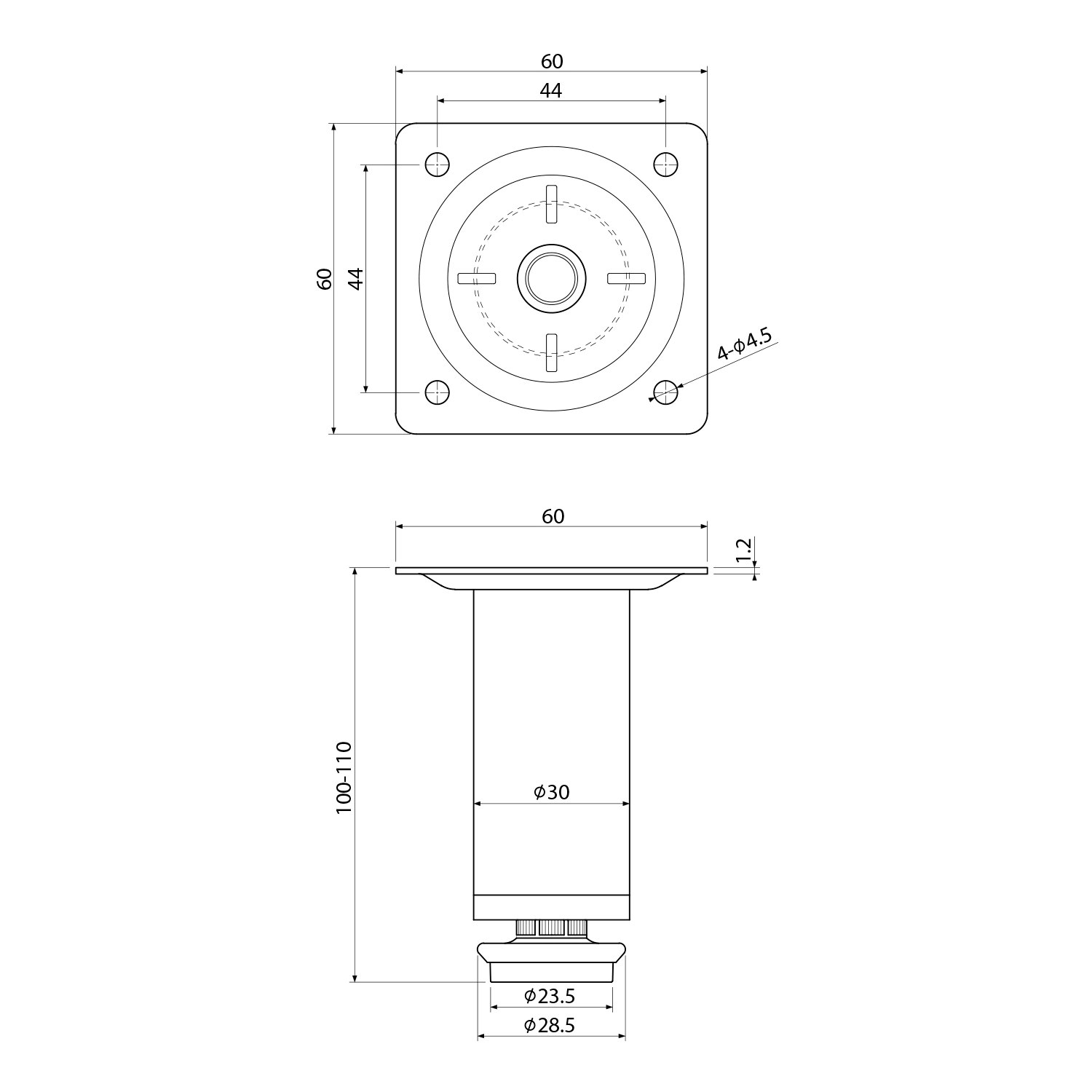 KERAMIA FRESH nóżka o regulowanej wysokość 100-110mm, czarny mat