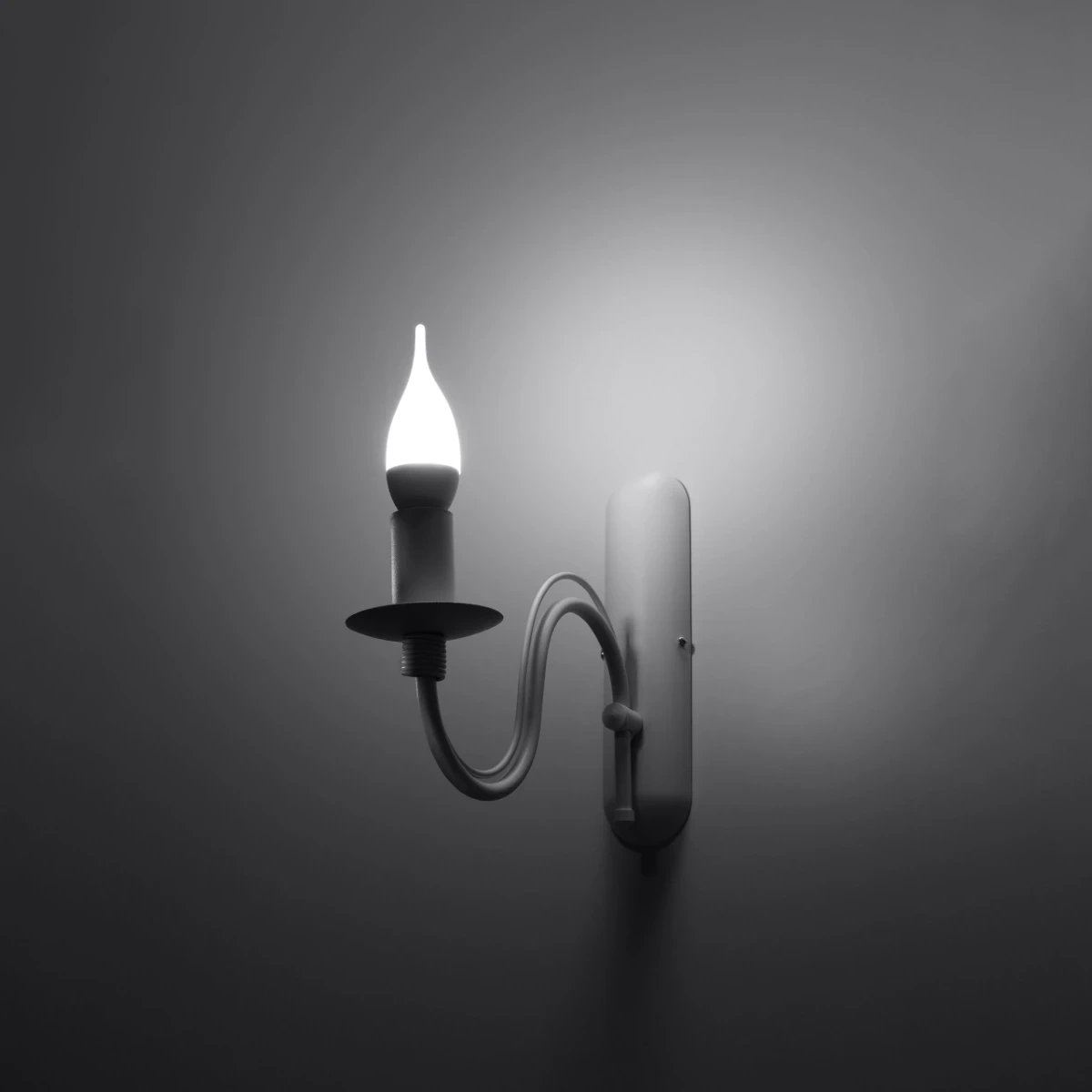 Bogate zdobienia, elegancko wygięte ramię i żarówka na kształt płomienia świeczki tworzą niepowtarzalny klimat glamour. Dzięki bogatemu designowi ta lampa z powodzeniem może stać się charakterystyczną ozdobą pomieszczenia.