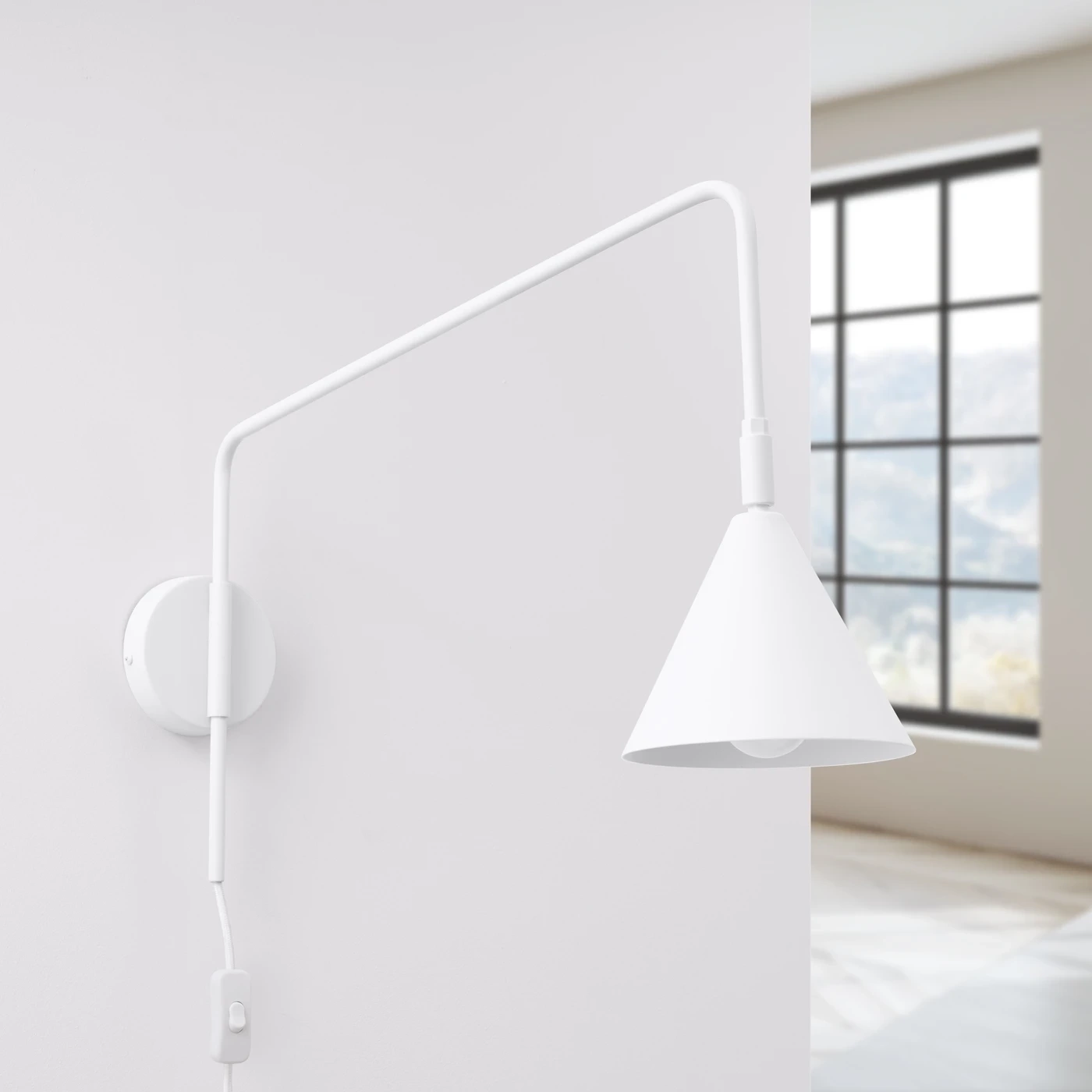 NOX to nowoczesny kinkiet o wyjątkowo lekkiej formie i wyraźnym charakterze. Prosty, metalowy wysięgnik zakończony geometrycznym, stożkowym kloszem tworzy intrygującą kompozycję, która świetnie sprawdzi się w nowoczesnych, skandynawskich czy industrialnych aranżacjach.