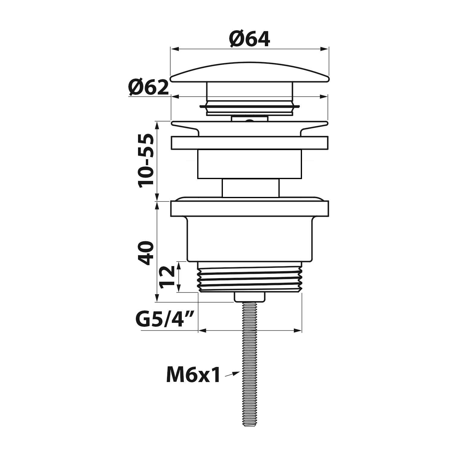 Korek umywalkowy 5/4“, klik-klak, duży grzybek, 10-55mm, chrom
