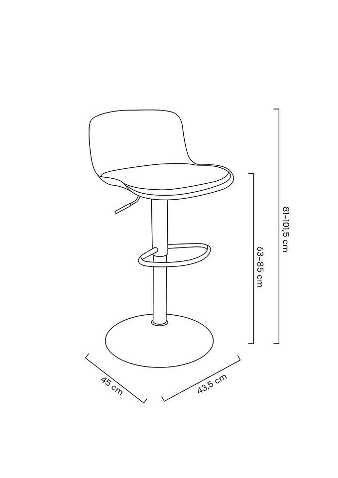 Krzesło barowe STOP TAP regulowane czarne. Hoker jest świetnym dodatkiem do kuchni, jeżeli chcemy sprawić, aby wyglądem i klimatem przypominała bar. Siedzisko z poduszką zostało wykonane z tworzywa sztucznego, a postawa z metalu w kolorze czarnym. Stop Tap ma regulowaną wysokość, podnóżek i obrotowe siedzisko, co zwiększa komfort użytkowania. Prosty i ponadczasowy design doskonale wkomponuje się w przestrzeń kuchenną, jak i część barową restauracji. Wymiary: wys. 81 - 101,5 cm / szer. 43,5 cm / gł. 45 cm Wysokość do krawędzi siedziska: 63 - 85 cm Siedzisko: szer. 43 cm gł. 36 cm Oparcie: wys. 21 cm / szer. 40 cm Podstawa: śr. 43 cm Podnóżek: szer. 29 cm / gł. 18 cm / gr. 2 cm Wysokość do podnóżka: 22-42 cm Długość rączki od regulacji: 15 cm Wymiary opakowania: 46 cm / 46 cm / 38 cm.