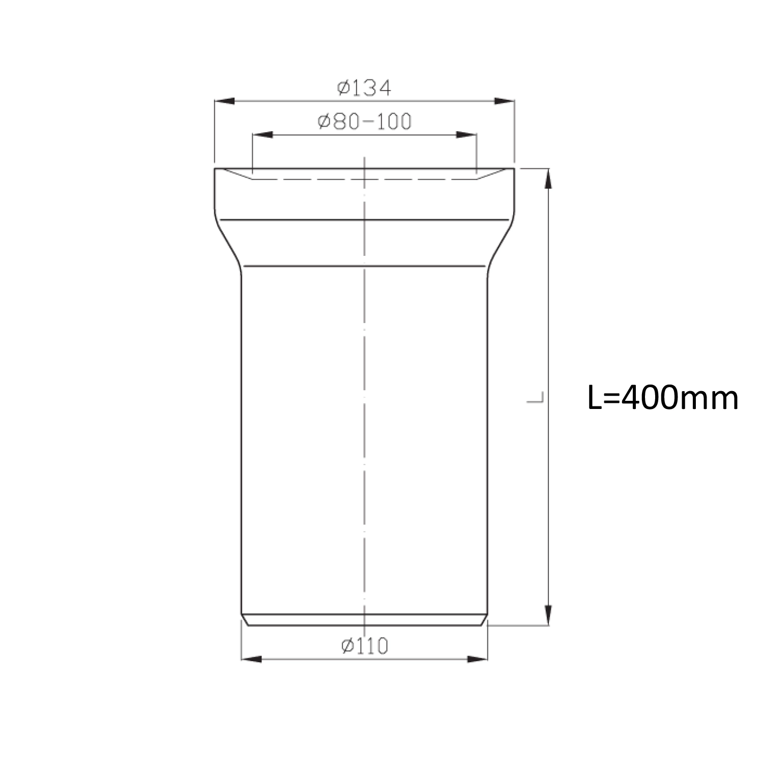 Łącznik prosty do WC, średnica 110mm, długość 400mm
