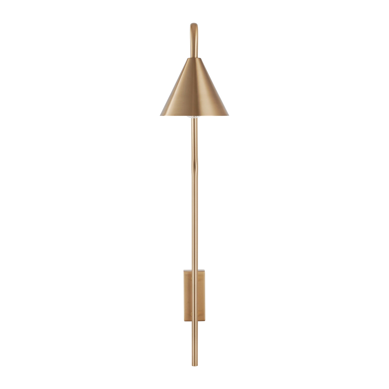 Kinkiet posiada długie, smukłe ramię wykonane z tego samego złotego metalu.