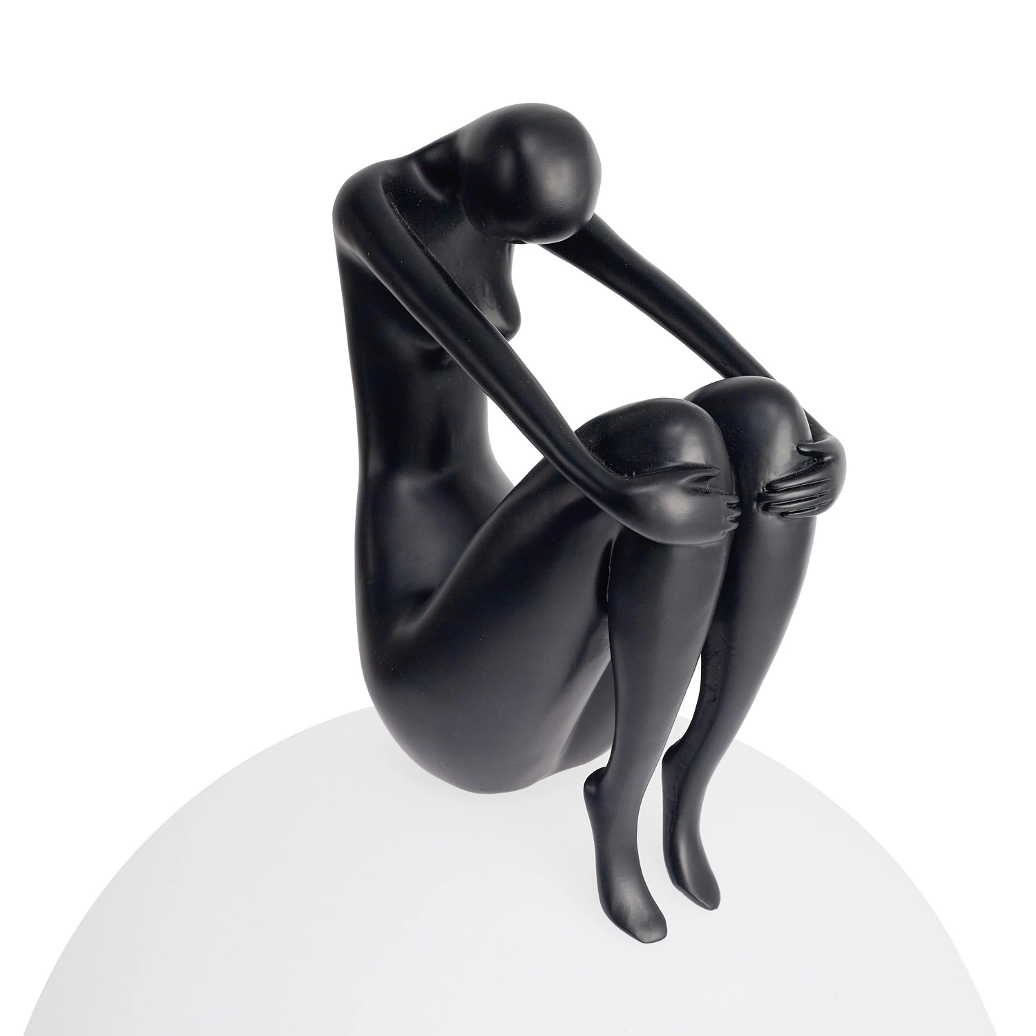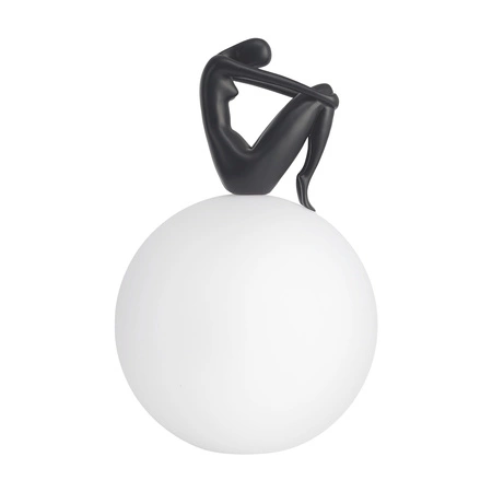 - Oryginalna lampa stołowa wkształcie kuli z sylwetką siedzącej kobiety