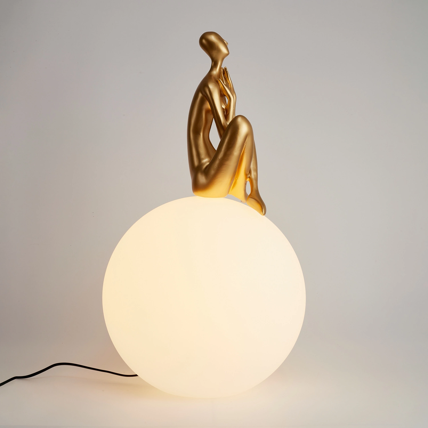 • Oryginalna lampa stołowa przedstawiająca siedzącą postać kobiety