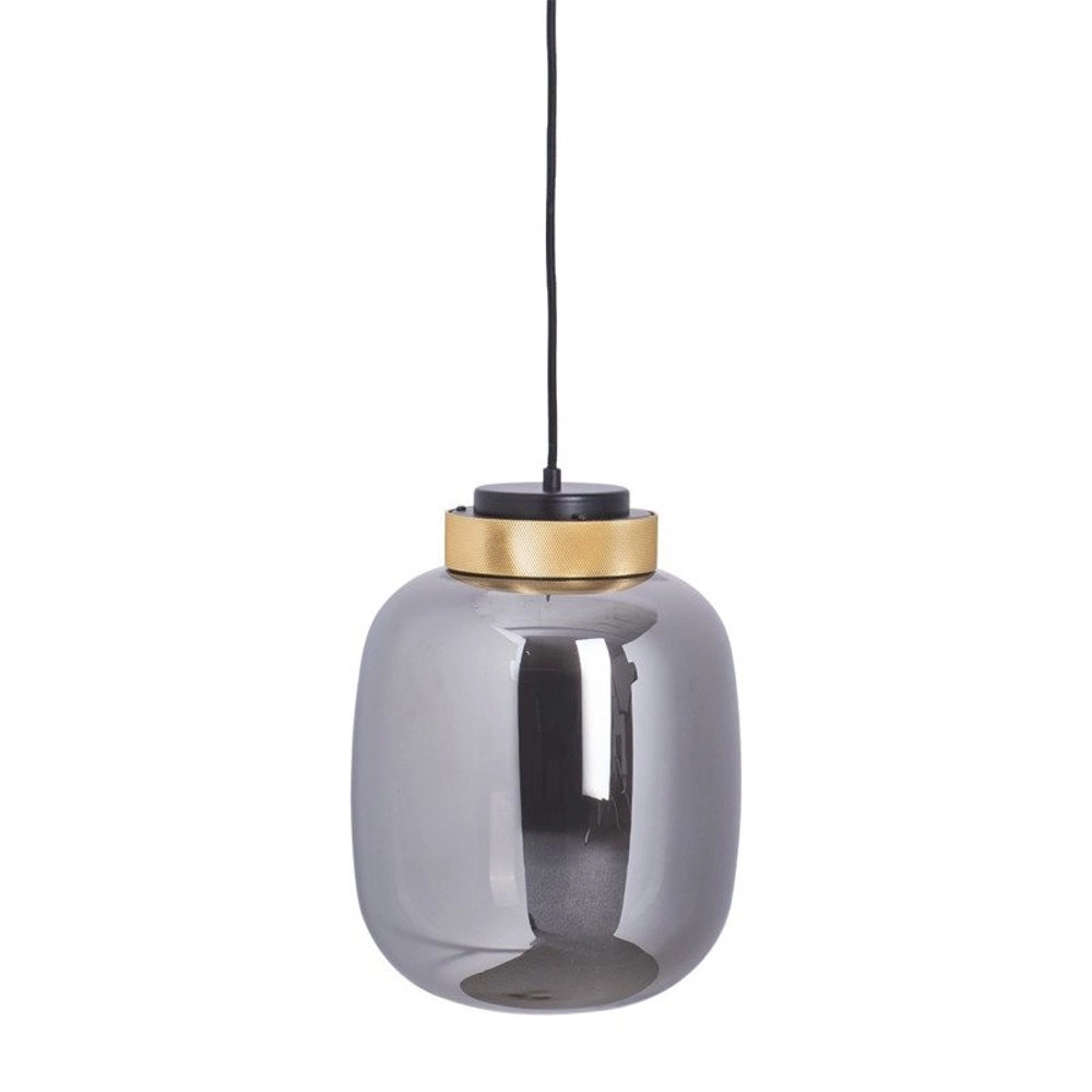 Lampa wisząca LED BOOM 25 cm - szare szkło metalizowane, złota oprawa