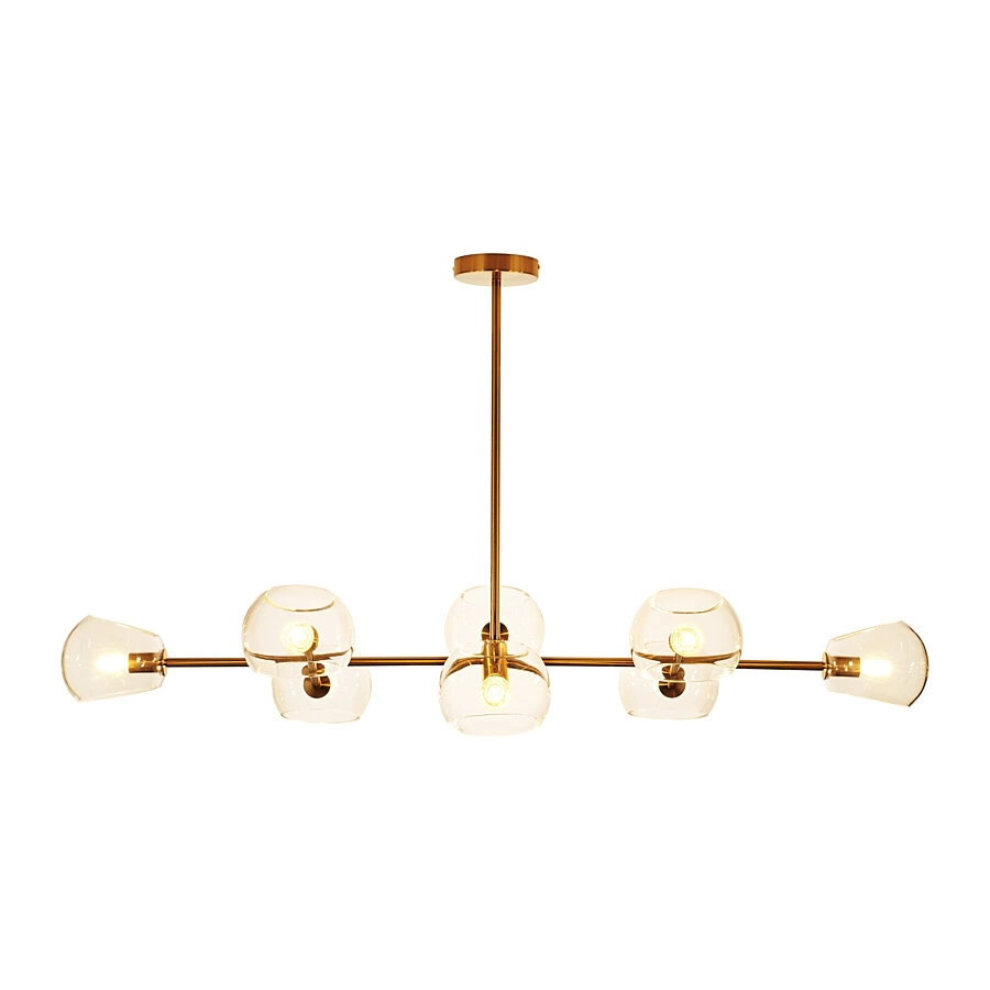 Lampa wisząca COSMIC-8, 85 cm - złoty stelaż, transparentne klosze