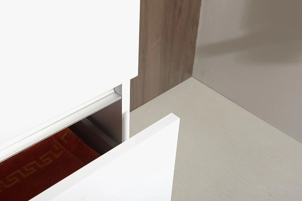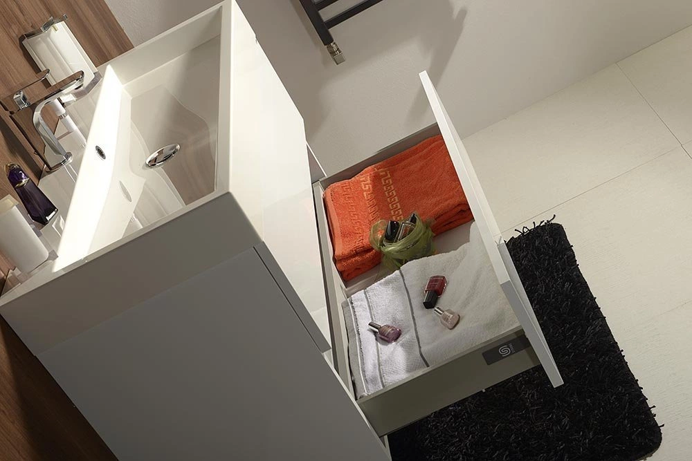 Szuflady naszych mebli wyposażone są w prowadnice z systemem powolnego i cichego domyku. Wystarczy jedno pchnięcie i szuflada domknie się sama, cicho i delikatnie.