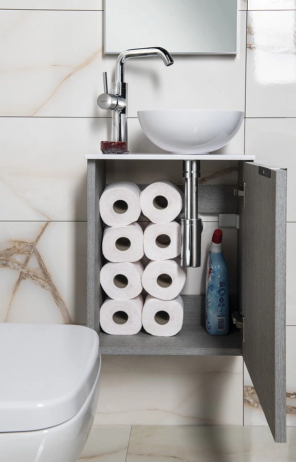Szafki umywalkowe LATUS są specjalnie zaprojektowane, aby wykorzystać niewielką dostępną przestrzeń, zwłaszcza w toaletach. Doskonale wykorzystuje przestrzeń pod umywalką do schowania środków do czyszczenia, niezbędnych potrzeb higienicznych lub zapasowego papieru toaletowego. W dowolnym dekorze z naszej oferty, w połączeniu z odpowiednią umywalką kompozytową lub ceramiczną i oczywiście małą designowa baterią lub zaworem tworzy pełnowatościowy zestaw, który zajmie minimum miejsca i spełnia potrzeby najbardziej wymagających użytkowników.