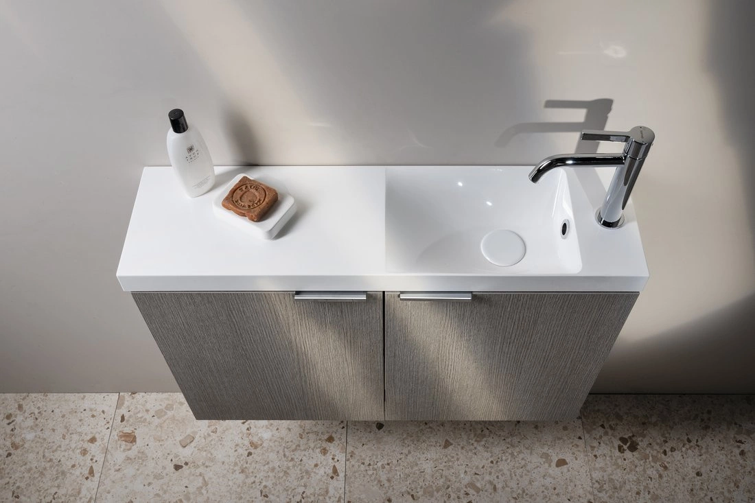 Szafki umywalkowe LATUS są specjalnie zaprojektowane, aby wykorzystać niewielką dostępną przestrzeń, zwłaszcza w toaletach. Doskonale wykorzystuje przestrzeń pod umywalką do schowania środków do czyszczenia, niezbędnych potrzeb higienicznych lub zapasowego papieru toaletowego. W dowolnym dekorze z naszej oferty, w połączeniu z odpowiednią umywalką kompozytową lub ceramiczną i oczywiście małą designowa baterią lub zaworem tworzy pełnowatościowy zestaw, który zajmie minimum miejsca i spełnia potrzeby najbardziej wymagających użytkowników.
