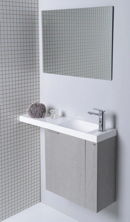 Szafki umywalkowe LATUS są specjalnie zaprojektowane, aby wykorzystać niewielką dostępną przestrzeń, zwłaszcza w toaletach. Doskonale wykorzystuje przestrzeń pod umywalką do schowania środków do czyszczenia, niezbędnych potrzeb higienicznych lub zapasowego papieru toaletowego. W dowolnym dekorze z naszej oferty, w połączeniu z odpowiednią umywalką kompozytową lub ceramiczną i oczywiście małą designowa baterią lub zaworem tworzy pełnowatościowy zestaw, który zajmie minimum miejsca i spełnia potrzeby najbardziej wymagających użytkowników.