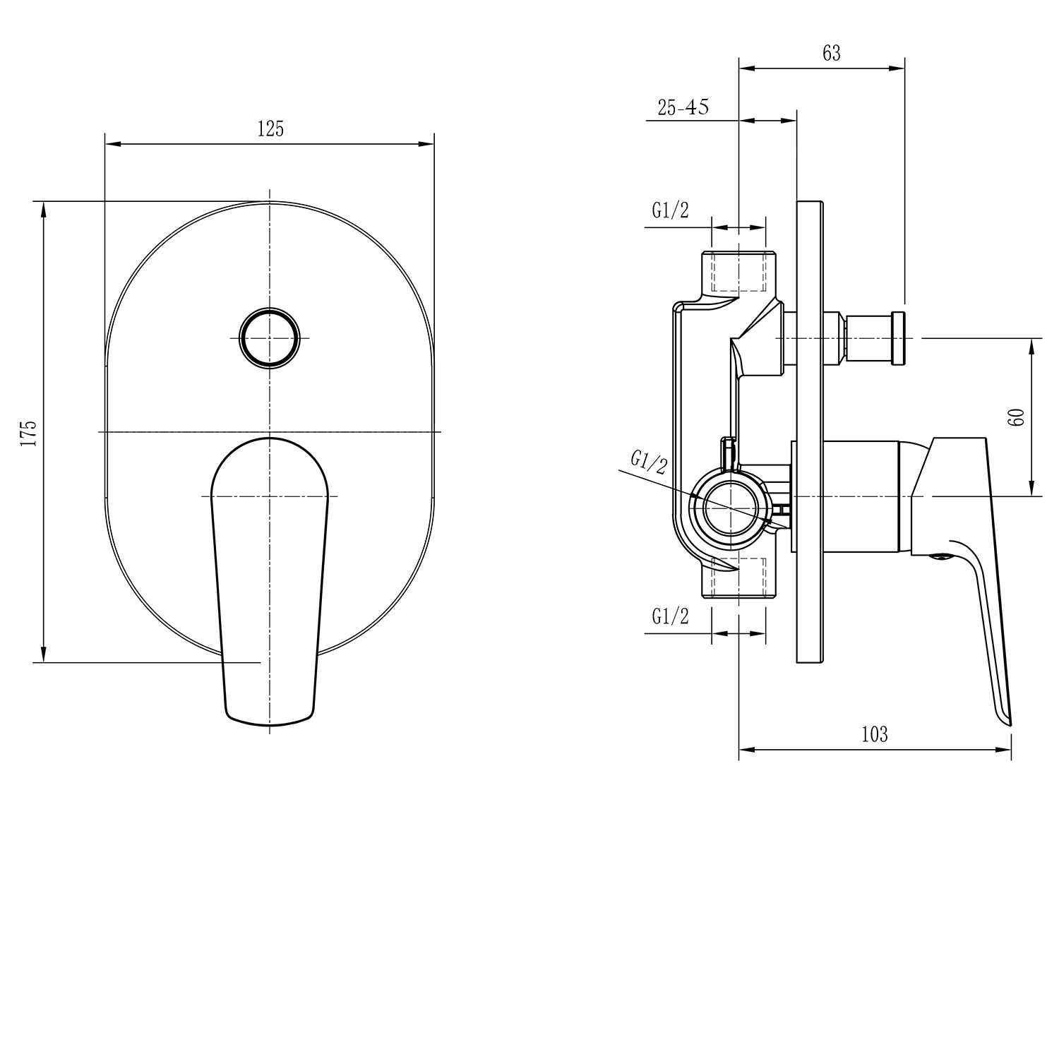 LOTTA bateria prysznicowa podtynkowa, 2 wyjścia, chrom