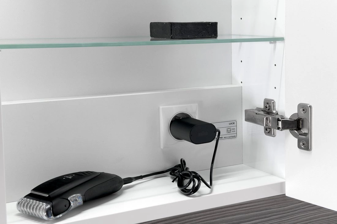 Szafki z lustrem Lucie z zaokrąglonymi rogami i bezuchwytowym systemem otwierania ze zwalniającymi zawiasami idealnie komponuje się z szafką umywalkową Lucie z naszej oferty. Za dodatkovą opłatą 50 % można szafki wykonać w dowolnym odcieniu z palety RAL lub NCS w połysku lub macie.