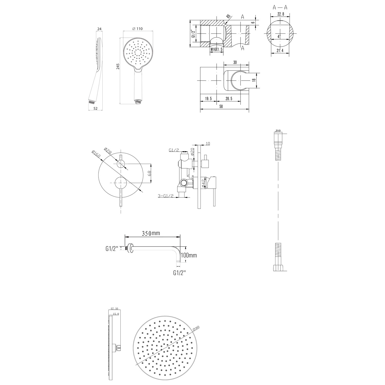 LUKA zestaw prysznicowy z baterią podtynkową, 2 wyjścia, chrom