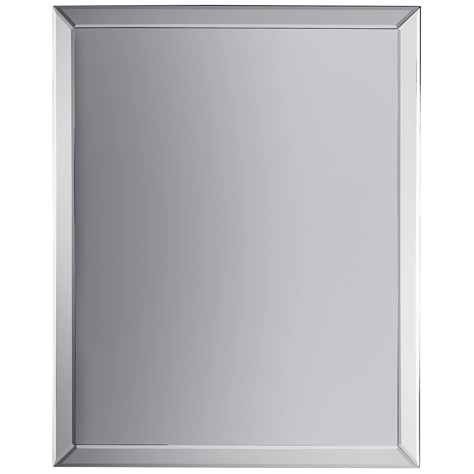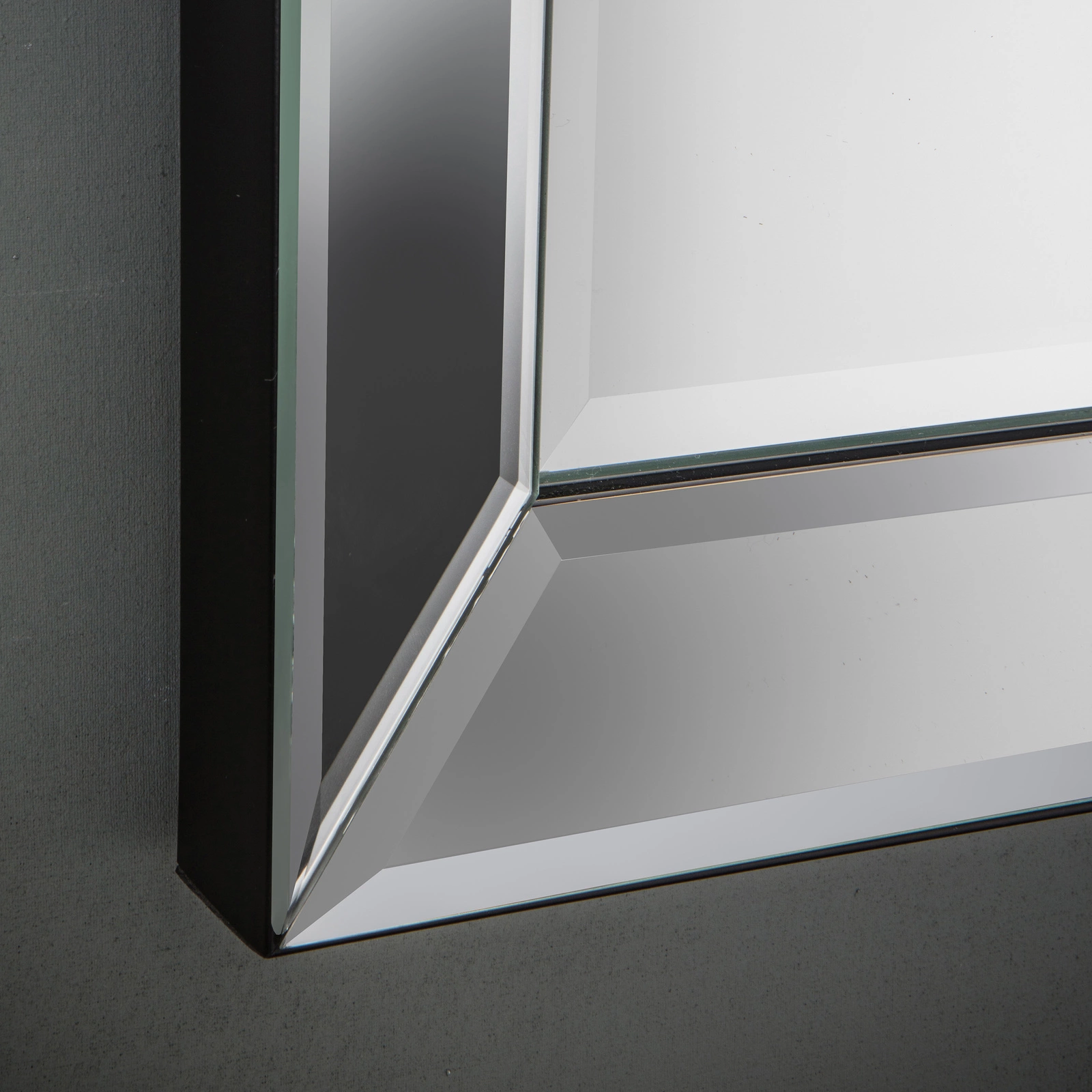 Eleganckie lustro z ramą składającą się z czterech fazowanych elementów lustrzanych z czarną krawędzią, co nadaje mu prosty, ale stylowy wygląd.