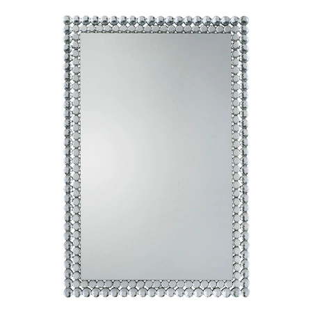 Eleganckie lustro z ramą złożoną z małych lustrzanych kółek.