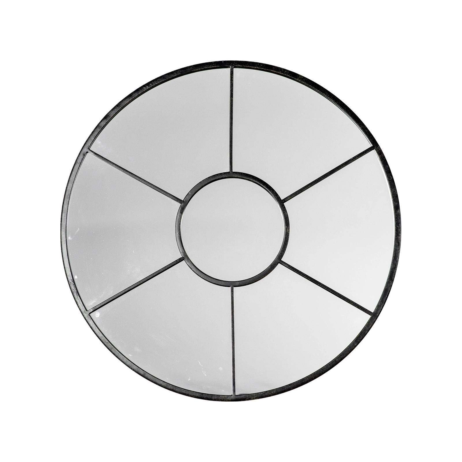 Urocze okrągłe lustro w stylu okiennym w czarnym wykończeniu. Dostępne również w delikatnym białym wykończeniu.