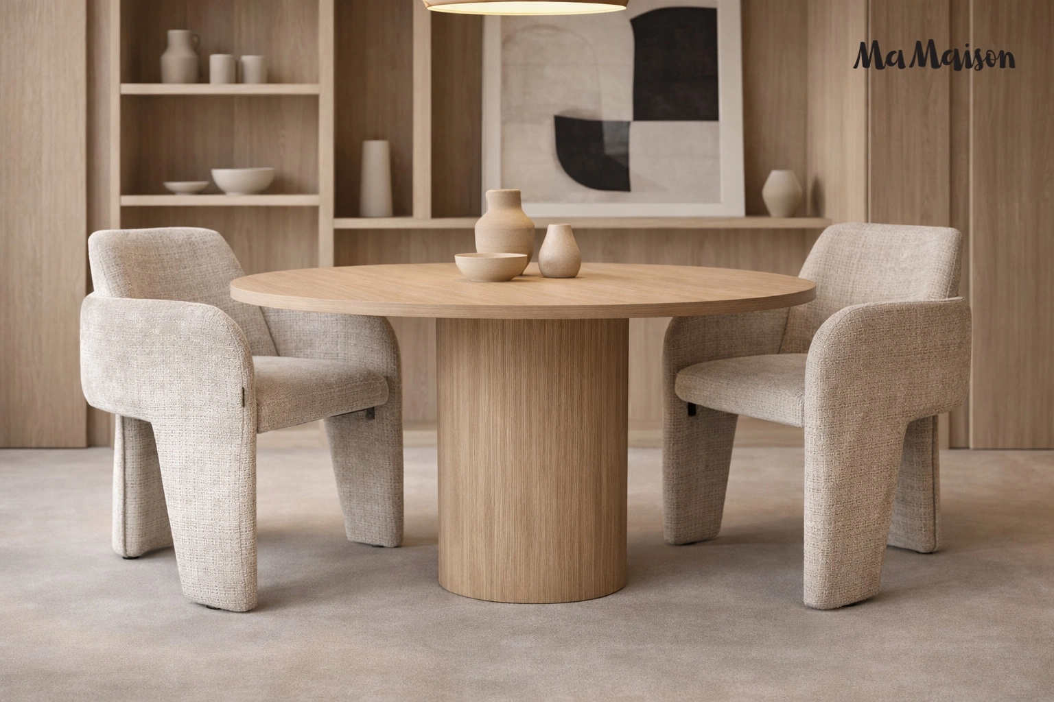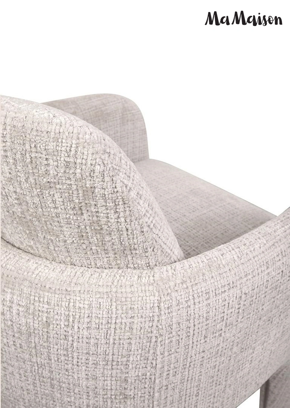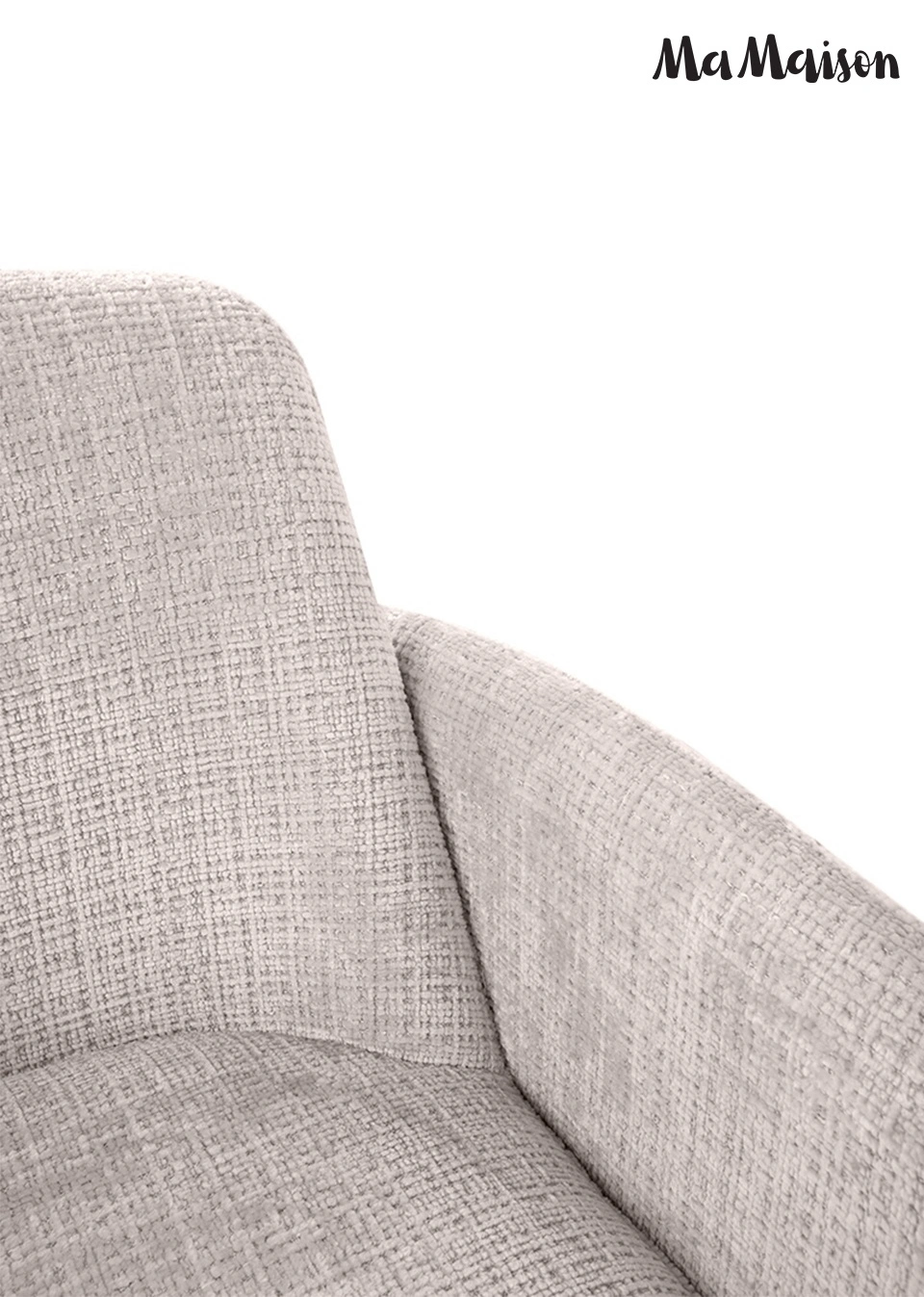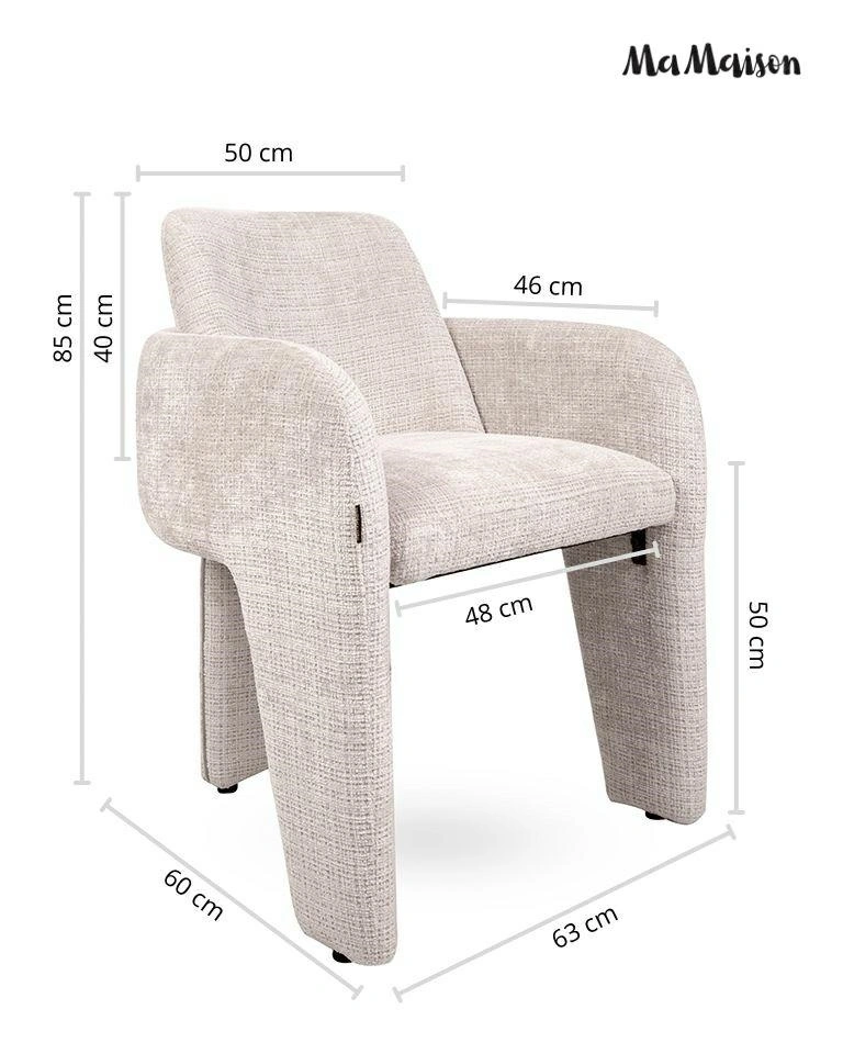 MaMaison krzesło LAUREN beżowe. Doskonały wybór dla tych, którzy cenią nowoczesny design. Tapicerka wykonana jest z przyjemnej w dotyku tkaniny Davis Cremona 02 w delikatnym beżowym kolorze, wprowadzającym do pomieszczenia harmonię. Oryginalna forma sprawia, że krzesło nadaje wnętrzu niepowtarzalny wyraz i przyciąga uwagę. Idealnie pasuje jako stylowy element jadalni, salonu lub przestrzeni użytkowej o nowoczesnym charakterze. Jeśli pragniesz nadać pomieszczeniu wyjątkowy design, to krzesło będzie idealnym wyborem. Wymiary: wys. 85 cm / szer. 63 cm / gł. 60 cm Wysokość do krawędzi siedziska: 50 cm Wysokość do podłokietników: 67 cm Siedzisko: szer. 48 cm / gł. 46 cm Oparcie: wys. 40 cm / szer. 50 cm Rozstaw nóg: 58 cm / gł. 58 cm Waga brutto: 37,6 kg Wymiary opakowania: 64 cm / 64 cm / 67,5 cm.