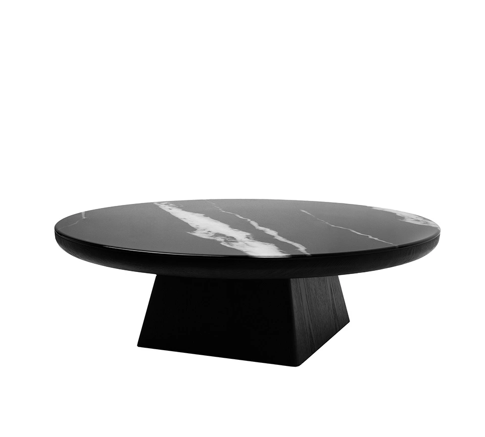Kontrast pomiędzy gładkim blatem a wyrazistą podstawą tworzy spójną, dopracowaną całość.