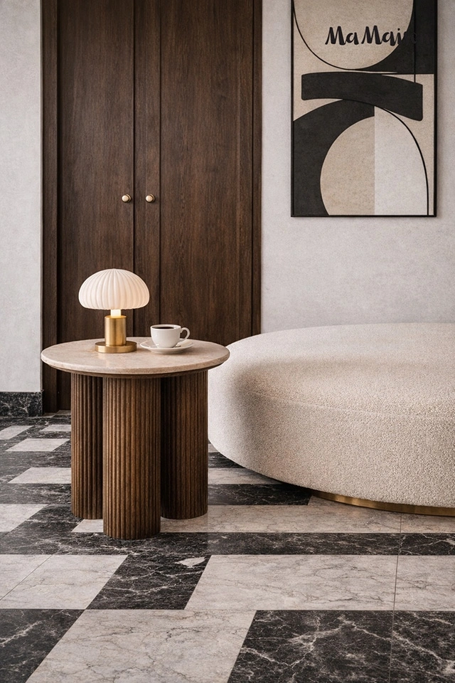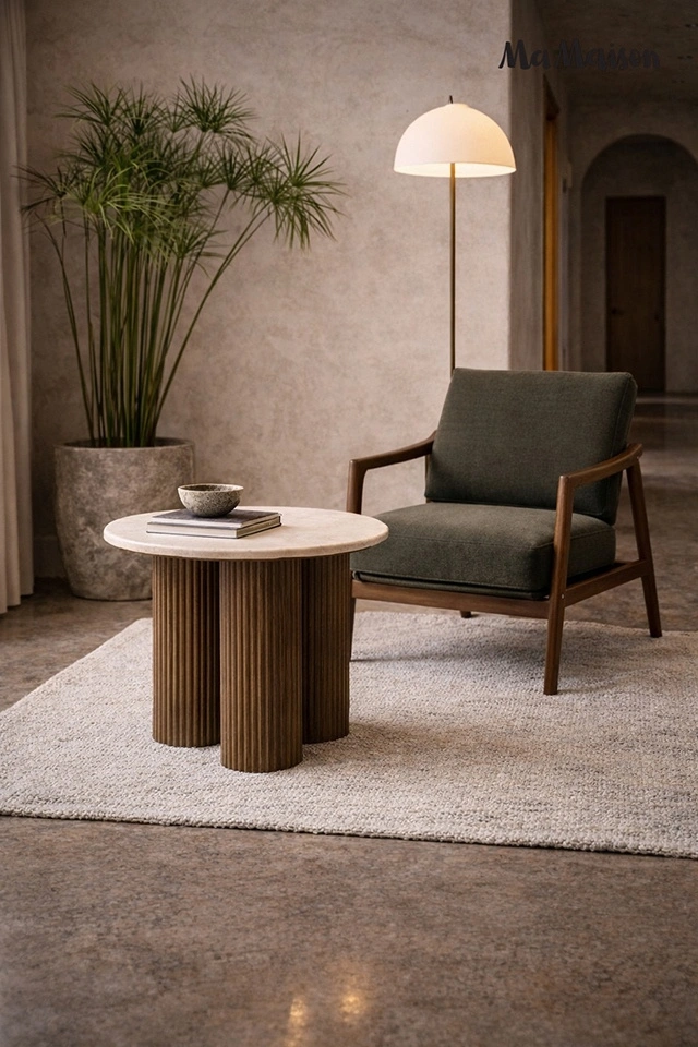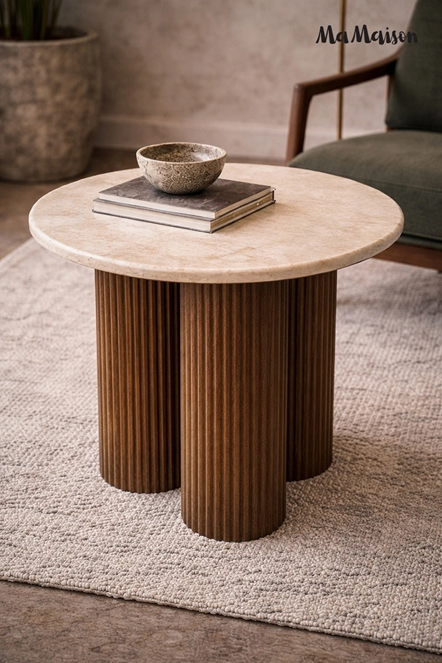 MaMaison stolik RAGNO 50 marmur / drewno. Szukasz subtelnej elegancji w kompaktowej formie? Stolik Ragno to idealna propozycja dla miłośników naturalnych materiałów i wysmakowanego designu. Blat z marmuru Boto Chino zachwyca beżową tonacją i delikatnym użyleniem, wprowadzając do wnętrza lekkość i klasę. Brązowa podstawa z drewna mango nadaje całości wyrazistości i rzeźbiarskiego charakteru. Ten zgrabny stolik pomocniczy świetnie sprawdzi się przy sofie, fotelu lub jako elegancki akcent dekoracyjny. Model należy do kolekcji Ragno, która obejmuje stoły w różnych wariantach i rozmiarach – idealna do tworzenia spójnych i stylowych aranżacji. Wymiary: wys. 52 cm / szer. 50 cm / gł. 50 cm Waga brutto: 12 kg.