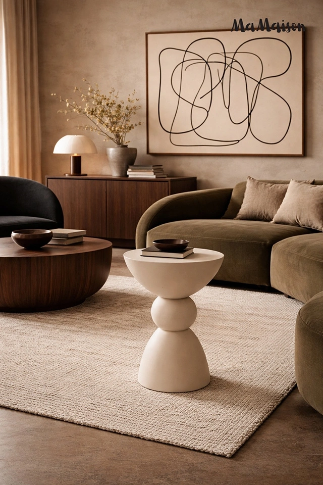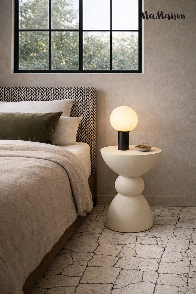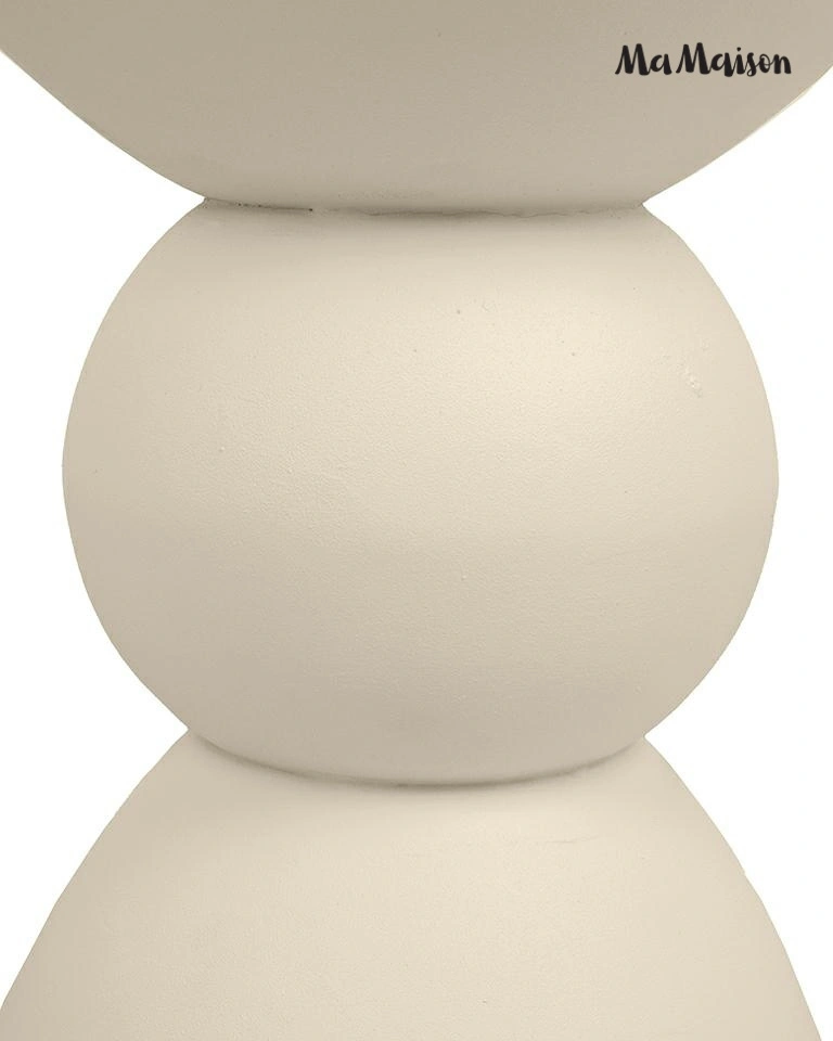 MaMaison stolik TADAO 35 beżowy. Stolik, który przyciąga uwagę swoją nieoczywistą, harmonijną formą. Wykonany z gładkiego MDF, zachwyca miękką linią i geometrycznym kształtem – kulista forma osadzona między stożkową podstawą a półokrągłym blatem tworzy wyjątkową, balansującą sylwetkę. Spokojna, jansnobeżowa kolorystyka idealnie komponuje się z wnętrzami utrzymanymi w stylu japandi, skandynawskim lub nowoczesnym. Tadao świetnie sprawdzi się jako stolik boczny, pomocniczy lub dekoracyjny element w salonie czy sypialni. To mebel, który równocześnie uspokaja przestrzeń i nadaje jej wyjątkowego charakteru. Wymiary: wys. 51 cm / szer. 35 cm / gł. 35 cm Waga brutto: 9 kg.