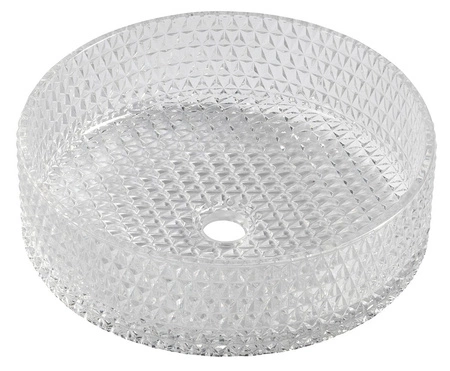 MARAGUA grawerowana szklana umywalka nablatowa średnica 39,5cm, czysty