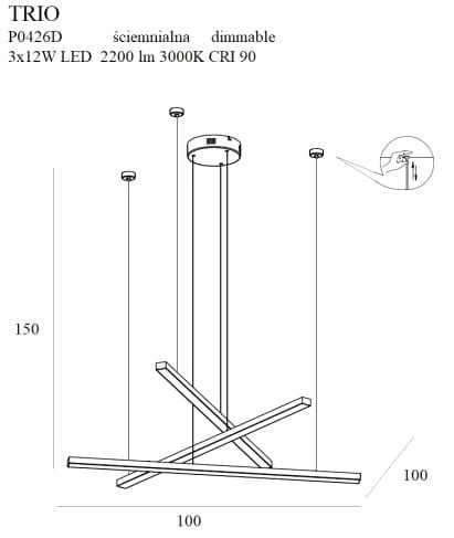 MAXLIGHT P0426 LAMPA WISZĄCA TRIO 3 ZŁOTA