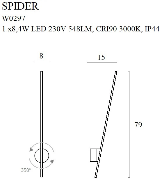 Moc/Power: 1 x 8,4W LED 230V 548LM, CRI90 3000K, IP44