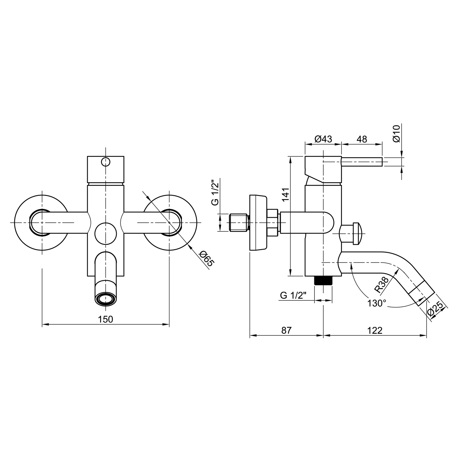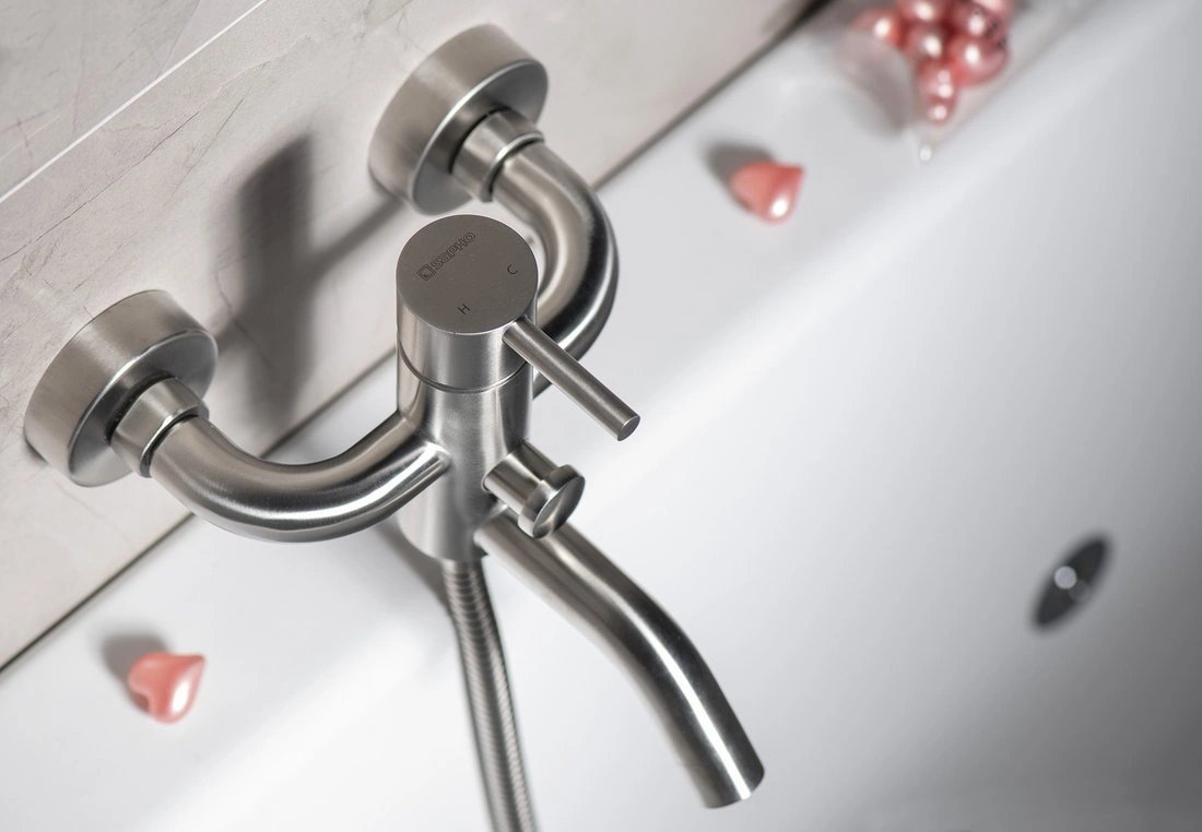 MINIMAL bateria wannowa ścienna, stal nierdzewna mat