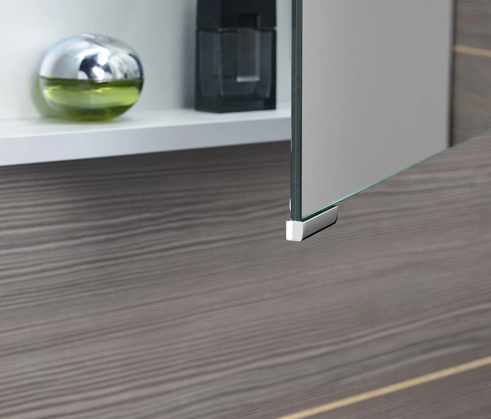 Szafki z lustrem MIRRÓ - kolejny krok do perfekcyjnego projektu. Wnętrze szafki ze szklanymi regulowanymi półkami zapewnia mnóstwo miejsca do przechowywania kosmetyków, potrzeb higienicznych czy golarki. Ponadto, nawet po otwarciu szafkii można korzystać z lustra, które jest z obu stron drzwiczek. Bezpieczne i ciche domykanie drzwi zapewniają zawiasy z hamowaniem BLUM z dożywotnią gwarancją. Razem z wydajnym oświetleniem LED, zintegrowanym gniazdkiem oraz designowym uchwytem na drzwiczkach, szafki MIRRÓ są doskonale funkcjonalne i praktyczne.