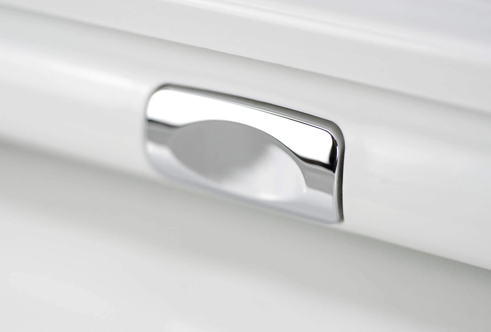 Jest to model bezkołnierzowy, brak zbędnych rantów i zakamarków zapobiega gromadzeniu się bakterii i zanieczyszczeń, co znacząco ułatwia sprzątanie. Innowacyjny, wirowy system spłukiwania perfekcyjnie oczyszcza wnętrze muszli, zapewniając nieskazitelną czystość po każdym użyciu. W zestawie znajduje się kompletny zestaw montażowy, co sprawia, że instalacja jest szybka i bezproblemowa. Ponadto WC Jasmin posiada uniwersalny odpływ, można go podpiąć zarówno pionowo, jak i poziomo. Przyłącze do spłuczki wynosi 3/8 cala. Model Jasmin ma pojemność zbiornika 7,4 l. Przycisk dwudzielny umożliwia dostosowanie ilości wody użytej do spłukania, na poziomie 3 l i 4,5 l.Właściwości