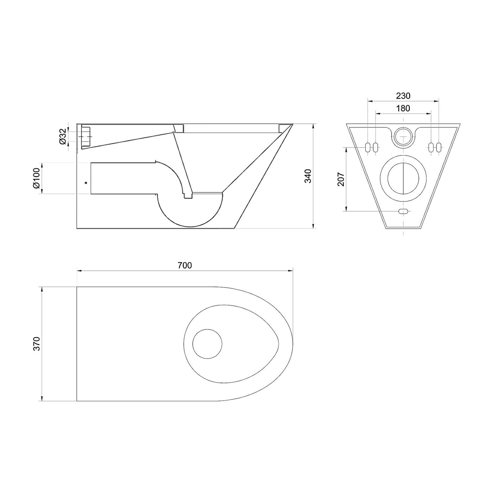 Miska WC wisząca 370x340x700, stal nierdzewna mat