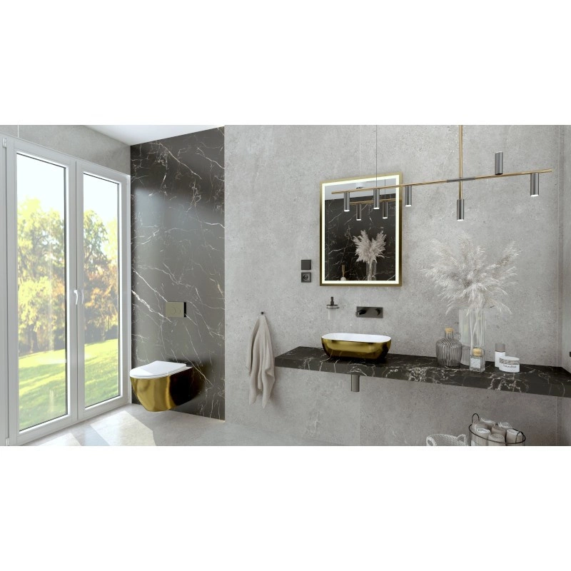 Miska WC SOFI SLIM BRUSHED GOLD to połączenie klasycznej bieli i nowoczesnego, szczotkowanego złota. Wygląd miski zachwyci swym designem i dopełni każdy projekt szykownej łazienki. Model posiada kompaktowy rozmiar, który idealnie sprawdzi się nawet w niewielkim wnętrzu. Miska wisząca doskonale komponuje się z umywalką w kolorze white/brushed gold, z którą możesz zrealizować spójny i niepowtarzalny projekt.