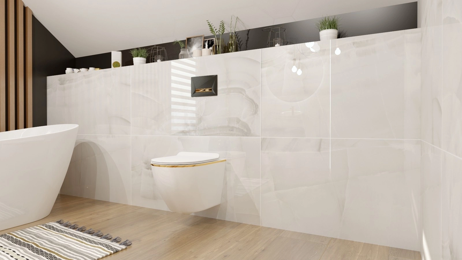 Miska wisząca SOFI SLIM GOLD LINE wyróżnia się zaokrągloną formą w odcieniu śnieżnobiałej bieli z dodatkiem minimalistycznej, złotej linii. Jeśli chcesz, aby złoty kolor delikatnie zagościł w Twojej łazience- ten model będzie idealny. Miska WC SOFI SLIM GOLD LINE nada wyjątkowego charakteru paryskim, glamour czy nowoczesnym wnętrzom. Piękno, harmonia i łagodność wprowadzenia pożądanego w świecie ceramiki koloru sprawia, że ten model miski jest niebanalny i niepowtarzalny.