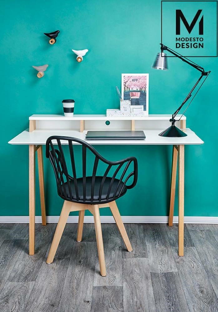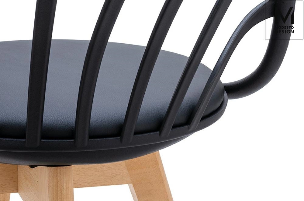 MODESTO krzesło ALBERT ARM czarne - polipropylen, ekoskóra, drewno bukowe