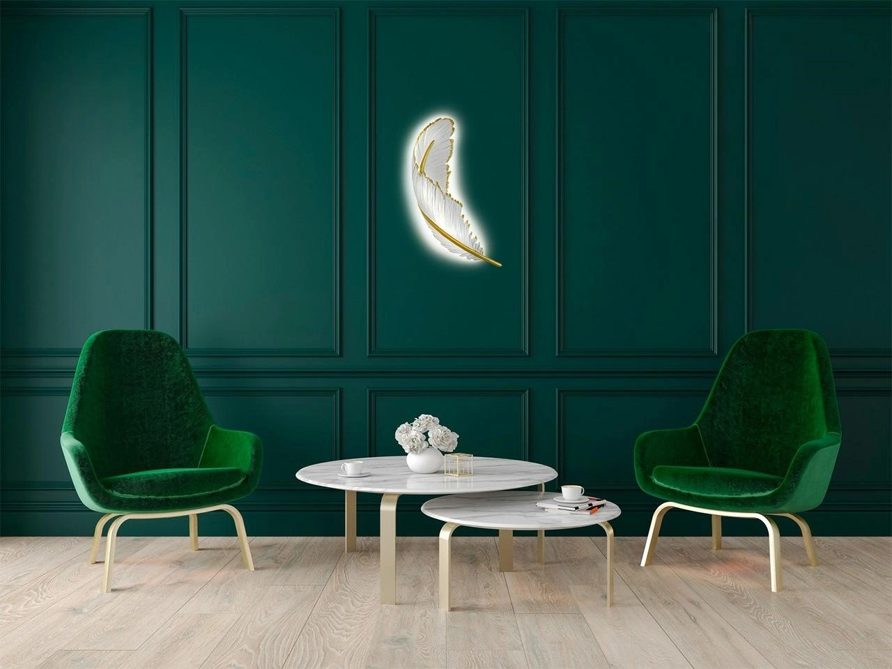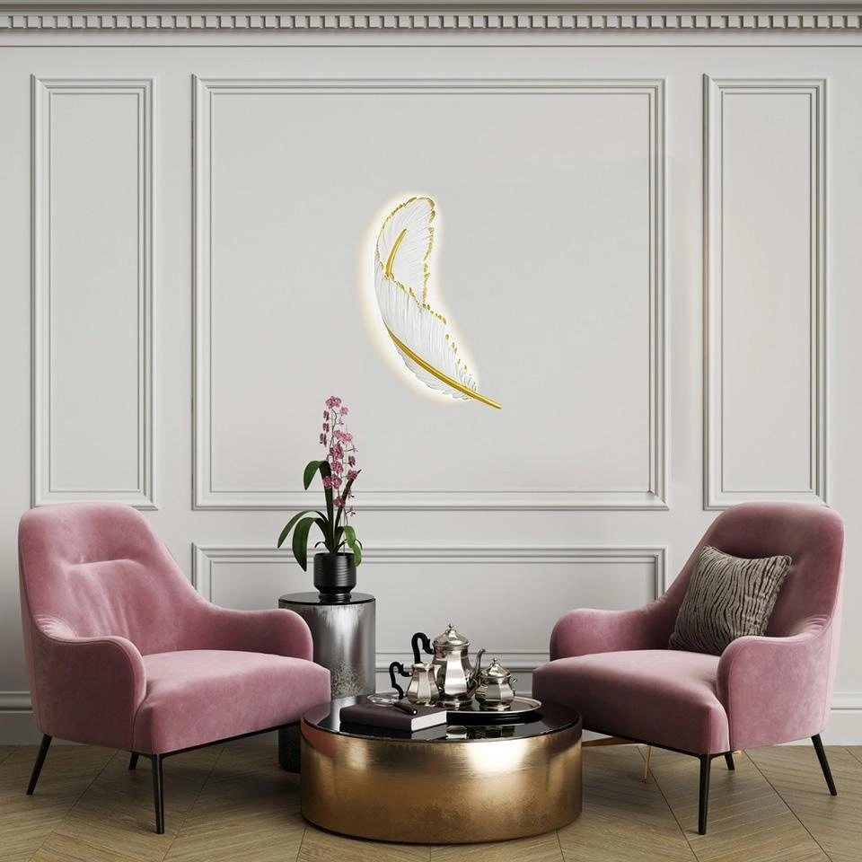 Ten niezwykle efektowny kinkiet został zainspirowany pięknym, lekkim piórem o nieskazitelnym wyglądzie.