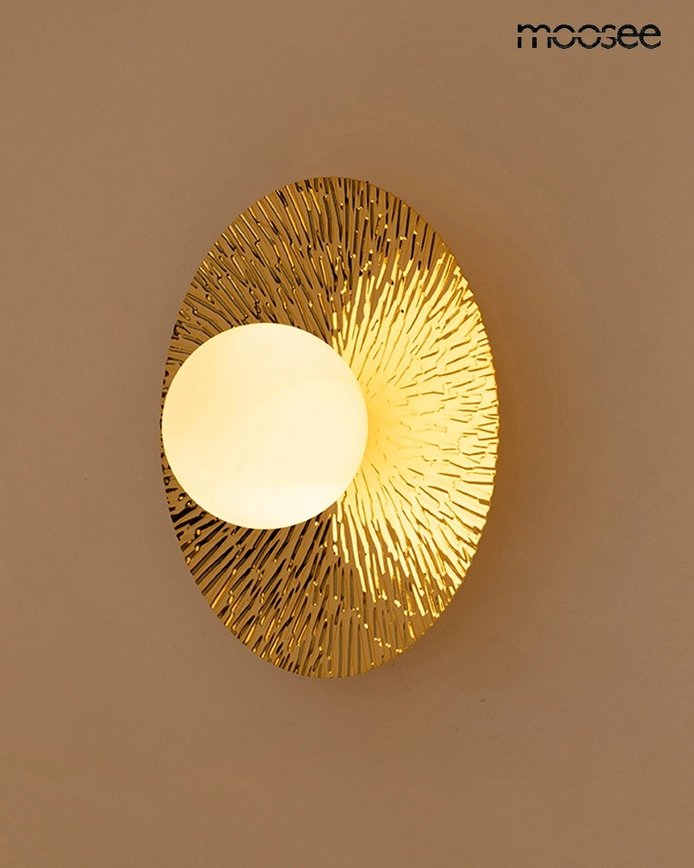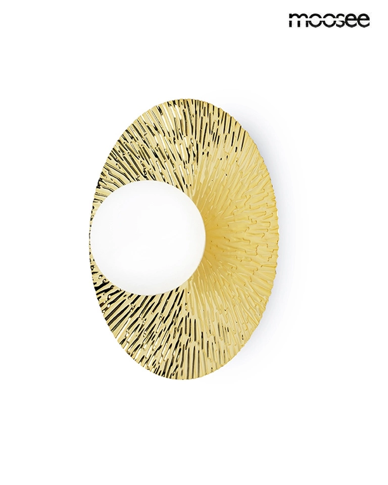 MOOSEE lampa ścienna SOUL 30 złota. Elegancka oprawa, podkreślająca wyrafinowany design wnętrza. Lampa harmonijnie łączy delikatność szkła z solidnością metalu, tworząc efektowny akcent. Nietuzinkowy kształt wprowadza do pomieszczenia wyjątkowy charakter. Idealnie komponuje się z wnętrzami w stylu glamour, modern classic, art déco, skandynawskim oraz nowoczesnym. Dostępna mniejsza wersja, która w duecie prezentuje się wyjątkowo stylowo. Światło: LED G9 max 5W (brak w zestawie) Oprawa: wys. 30 cm / szer. 30 cm / gł. 16 cm Mocowanie: śr. 16 cm / gł. 4 cm Element świetlny: wys. 11 cm Montaż: instalacja ścienna Waga netto: 2,5 kg Wymiary opakowania: 37 cm / 37 cm / 25 cm.