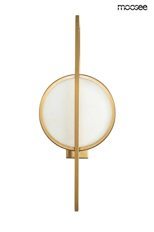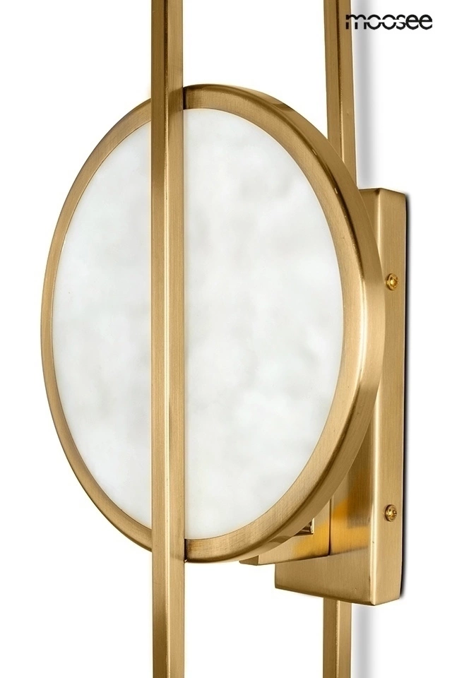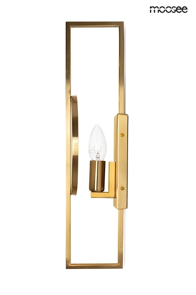 MOOSEE lampa ścienna TROYA złota. Nowoczesna koncepcja oświetlenia. Geometryczny wzór wykonano w wyniku połączenia stali i szkła. Biało-złote wykończenie dodaje całości elegancji i wyrafinowania. Światło przenika przez szklany klosz, tworząc przytulny nastrój. Troya to wspaniały sposób na dekorację oraz wprowadzenie współczesnego akcentu do wnętrza. Światło: E14 max. 40 W (brak w zestawie) Oprawa: wys. 48 cm / szer. 20 cm / gł. 12 cm Mocowanie: wys. 18 cm / szer. 6 cm / gł. 2,5 cm Montaż: instalacja ścienna Waga netto: 1 kg Wymiary opakowania: 54 cm / 26 cm / 18 cm.