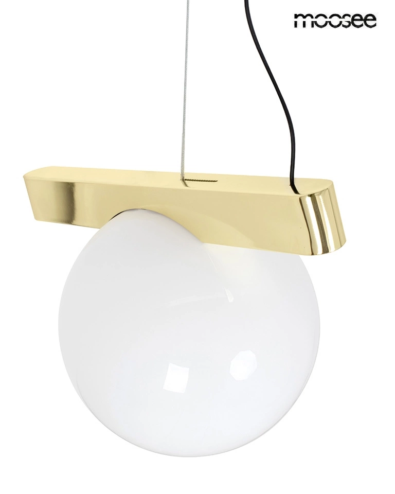 Wykonana z trwałej stali nierdzewnej w złotym odcieniu oraz mlecznego szkła, które tworzy kulisty klosz, dodaje wnętrzu harmonii i stylu.