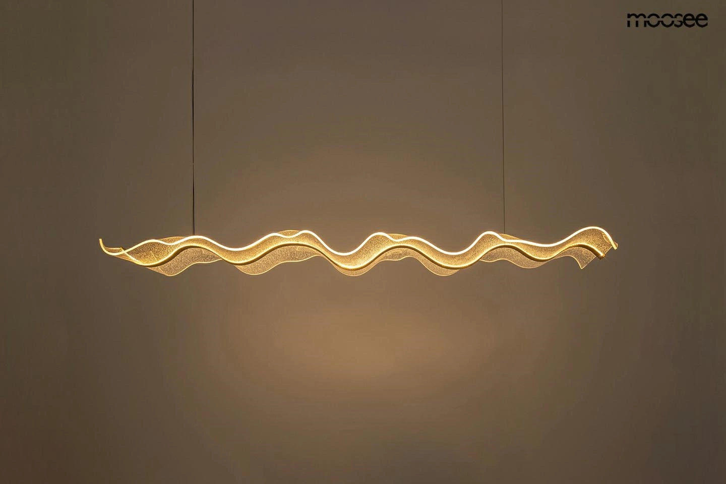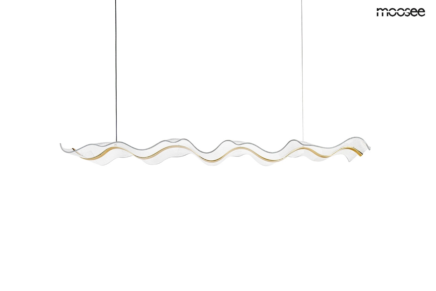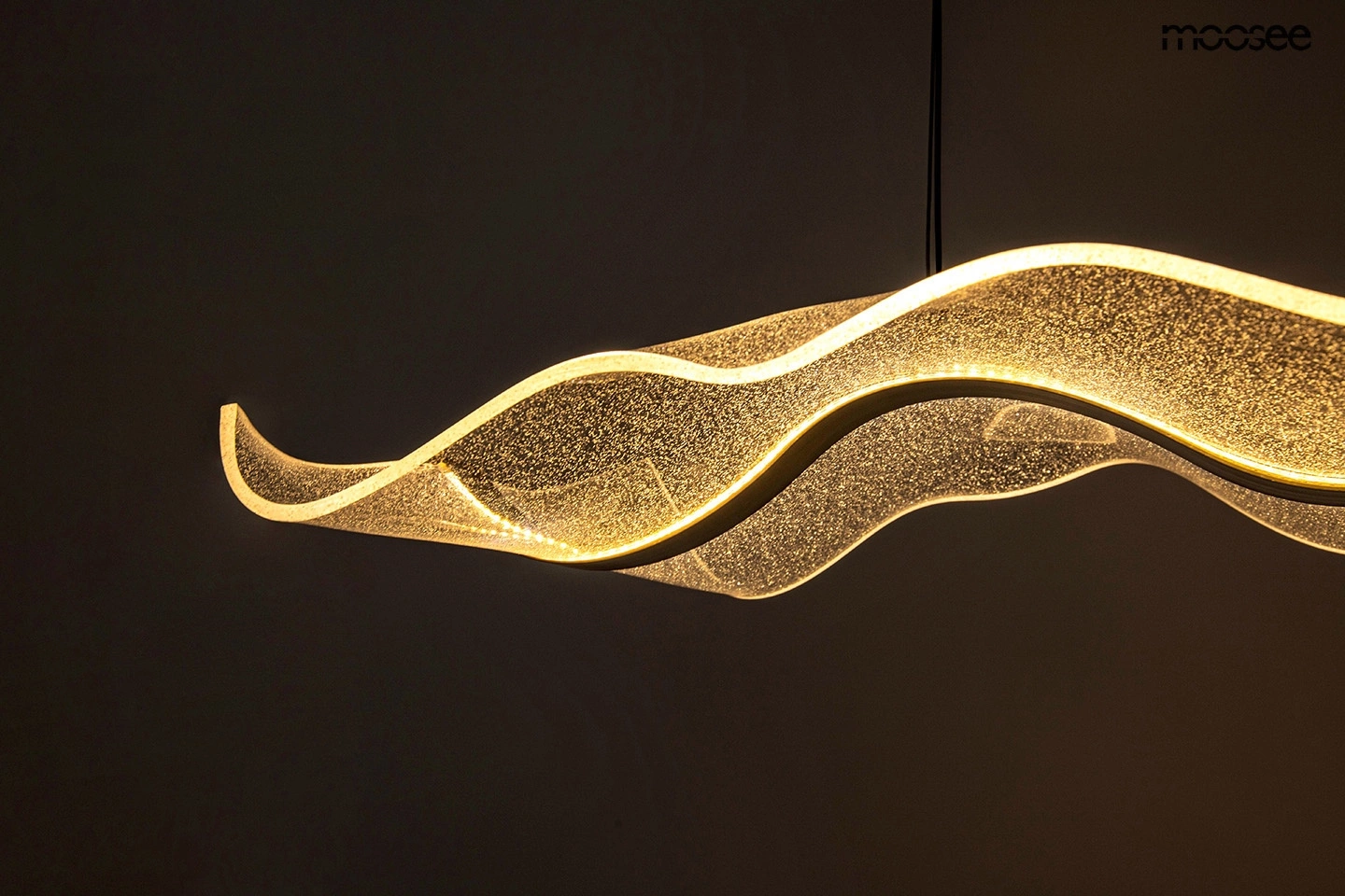 Nierówne, designerskie linie wykonane ze stali o złotym wykończeniu w połączeniu z akrylem nadają prosty, nowoczesny wygląd.